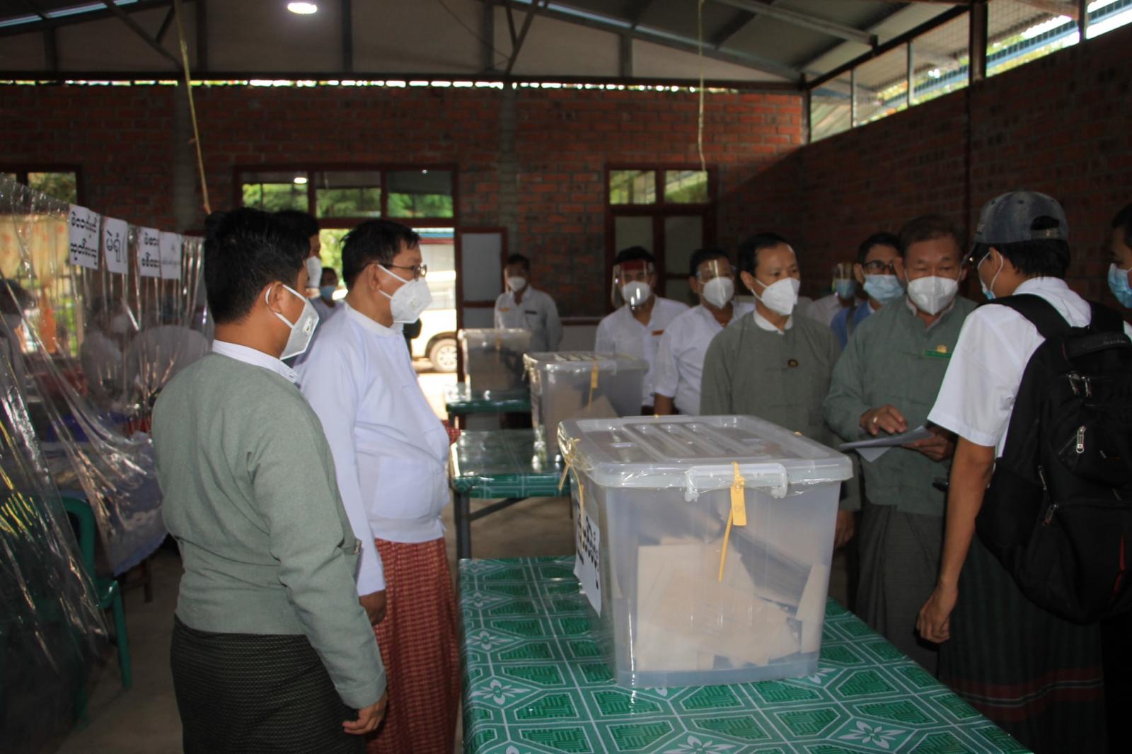 ပြည်ထောင်စုရွေးကောက်ပွဲကော်မရှင်၊ ပဲခူးတိုင်းဒေသကြီးတာဝန်ခံနှင့်အဖွဲ့အား ရပ်ကွက်ကော်မရှင် အဖွဲ့ခွဲဥက္ကဋ္ဌမှ ပုဏ္ဏားစု ရပ်ကွက်အတွင်းရှိ မဲရုံများအခြေအနေ၊ ရပ်ကွက်အတွင်းကြိုတင်ဆန္ဒမဲများ လိုက်လံကောက်ခံမှုအခြေအနေ၊ ရပ်ကွက် ကော်မရှင်အဖွဲ့ခွဲရုံးတွင် ကြိုတင်ဆန္ဒမဲအတွက် ဆောင်ရွက်ထားရှိမှု အခြေအနေများနှင့် ကြိုတင်မဲ လာရောက်ပေးမှု အခြေအနေများ ကို ရှင်းလင်းတင်ပြရာ တိုင်းဒေသကြီး တာဝန်ခံဦးထွန်းခင်က ကြိုတင် ဆန္ဒမဲများရယူတွင် ဆန္ဒပြုပြီးမဲလက်မှတ်များ ထည့်သွင်း သည့် စာအိတ်များကို မဲဆန္ဒရှင်များက လုံခြုံစွာပိတ်ခဲ့မှုမရှိခြင်း၊ အချို့စာအိတ်များကို ကော်သုတ်၍ပိတ်ရာ၌ အစွန်းအထင်း ဖြစ်ပေါ်စေခြင်း၊ အသက်အရွယ်ကြီးရင့်သူ မဲဆန္ဒရှင်များ၏ နေအိမ်များသို့သွားရောက်၍ ကြိုတင် ဆန္ဒမဲများရယူရာတွင် ကောက်ယူမည့် မဲဆန္ဒရှင်အရေအတွက် များပြားခြင်းကြောင့် သတ်မှတ်ထားသည့် အမှန်ခြစ်တံဆိပ်တုံးဖြင့် ဆန္ဒပြုရမည့်အစား ဘော်လ်ပင်ဖြင့်အမှန်ခြစ်၍ ဆန္ဒပြုထားသည့်ဆန္ဒမဲလက်မှတ်၊ ကြိုတင်ဆန္ဒမဲ လက်မှတ်ပေါ်တွင် မဲရုံမှူး၏လက်မှတ်(သို့) တာဝန်ခံထုတ်ပေးသူ၏ လက်မှတ်နှင့် အမည်ပါရှိသော ဆန္ဒမဲလက်မှတ်၊ လွှတ်တော်အလိုက်ထည့်သွင်းရမည့် ကြိုတင်မဲလက်မှတ်နှင့် စာအိတ်လွဲမှားသော်လည်း မဲဆန္ဒရှင်က မှန်ကန်စွာဆန္ဒပြုထားသော ဆန္ဒလက်မှတ်တို့အား ပယ်မဲအဖြစ် သတ်မှတ်မည် မဟုတ်ကြောင်း ရှင်းလင်းပြောကြားခဲ့ကြောင်း သိရသည်။