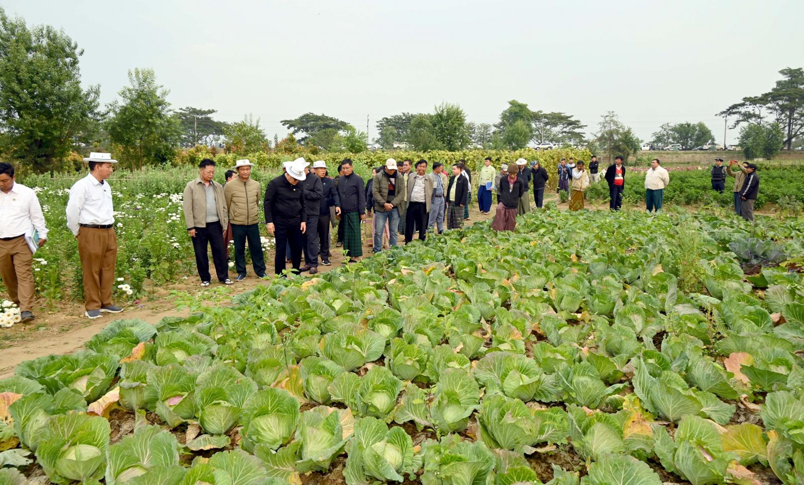 ထို့နောက် ပြည်နယ်ဝန်ကြီးချုပ်နှင့် အဖွဲ့ဝင်များသည် ဝိုင်းမော်မြို့ အမှတ်(၁)ရပ်ကွက် နန့်မြင်းခ ချောင်းဘေးရှိ ကွင်းအမှတ် (၂၂)၊ ရွာတော်ကွင်းအတွင်း တောင်သူများ၏ ဟင်းသီးဟင်းရွက် စိုက်ခင်းများသို့ သွားရောက်ပြီး စိုက်ပျိုးရေးဦးစီးဌာနနှင့် ပူးပေါင်း၍ GAP (စိုက်ပျိုးရေးဆိုင်ရာ အလေ့အကျင့် ကောင်းများ) နှင့် ဘေးကင်းလုံခြုံသော ဟင်းသီးဟင်းရွက်များ စိုက်ပျိုးထုတ်လုပ်နိုင်ရေး အသိ ပညာပေး ဆောင်ရွက်မှုဖြင့် စိုက်ပျိုးထုတ်လုပ်ရောင်းချလက်ရှိသည့် ခရမ်းချဉ်သီး၊ ခရမ်းသီး၊ ဗိုလ်စားပဲ၊ မြေထောက်ပဲ၊ ငရုတ်၊ ငရုတ်ပွ၊ ဖူးစားပြောင်း၊ ဂေါ်ဖီထုတ် စသည့် ဟင်းသီးဟင်းရွက်မျိုးစုံ စိုက်ခင်းများနှင့် ဂန္ဓာမာပန်းစိုက်ခင်းများကို လှည့်လည်ကြည့်ရှုစစ်ဆေးခဲ့ကြပြီး စိုက်ပျိုးရောင်းချနိုင် မှုနှင့် စိုက်ပျိုးထုတ်လုပ်မှုကုန်ကျစရိတ်၊ ဝင်ငွေရရှိမှုအခြေအနေများကို မေးမြန်းဆွေးနွေးခဲ့ကြကာ အဆိုပါကွင်း၌ ကုန်ထုတ်လမ်းဆောင်ရွက်ပေးနိုင်ရေး ပေါင်းစပ်ဆောင်ရွက်ပေးခဲ့ကြောင်း သိရသည်။