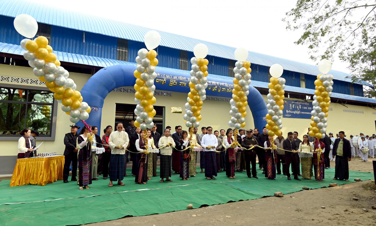 ထို့နောက် အဆောက်အဦသစ်အား တာဝန်ယူဆောက်လုပ်သည့် Country Road ကုမ္ပဏီတာဝန်ရှိ သူက အဆောက်အဦသစ်နှင့် ပတ်သက်သည့် စာရွက်/စာရွက်စာတမ်းများ လွှဲပြောင်းပေးအပ်မှုကို ပြည်နယ်အားကစားနှင့် ကာယပညာဦးစီးဌာန ပြည်နယ်ဦးစီးမှူး ဦးအောင်သူက လက်ခံရယူပြီး အဆောက်အဦသစ်ကို ပြည်နယ်ဝန်ကြီးချုပ်၊ ပြည်နယ်တရားလွှတ်တော်တရားသူကြီးချုပ် ဦးတူးဂျာ၊ ပြည်နယ်လုံခြုံရေးနှင့် နယ်စပ်ရေးရာဝန်ကြီး ဗိုလ်မှူးကြီး ကျော်သူရ၊ ပြည်နယ်စီးပွားရေးရာဝန်ကြီး ဦးမျိုးဆွေနှင့် ကုမ္ပဏီတာဝန်ရှိသူတို့က ဖဲကြိုးဖြတ်ဖွင့်လှစ်ပေးကြကာ အဆောက်အဦသစ်အတွင်း ဖွဲ့စည်းတည်ဆောက်ထားရှိမှု အခြေအနေများအား လှည့်လည်ကြည့်ရှုစစ်ဆေးခဲ့ကြသည်။