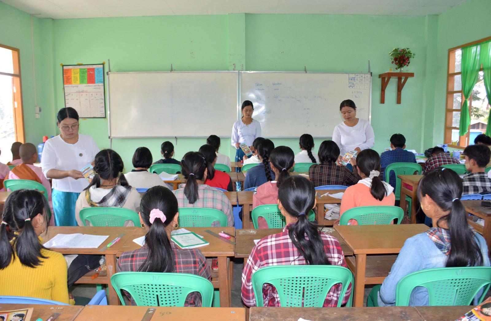ထိုလက်ကမ်းစာစောင်များကို ကျောင်းသား၊ ကျောင်းသူများ အသိပညာဗဟုသုတများ တိုးပွားစေရန်နှင့် ပြည်ထောင်စုစိတ်ဓာတ်များပေါ်ထွန်းလာစေရန် ရည်ရွယ်၍ ပြန်ကြားရေးနှင့်ပြည်သူ့ဆက်ဆံ ရေးဦးစီးဌာန မိုးညှင်းခရိုင်ရုံးမှ ခရိုင်ဦးစီးမှူး ဒေါ်နွယ်နွယ်အေးနှင့် ဝန်ထမ်းများက အခမဲ့ဖြန့်ဝေပေးခဲ့ ကြောင်း သိရသည်။