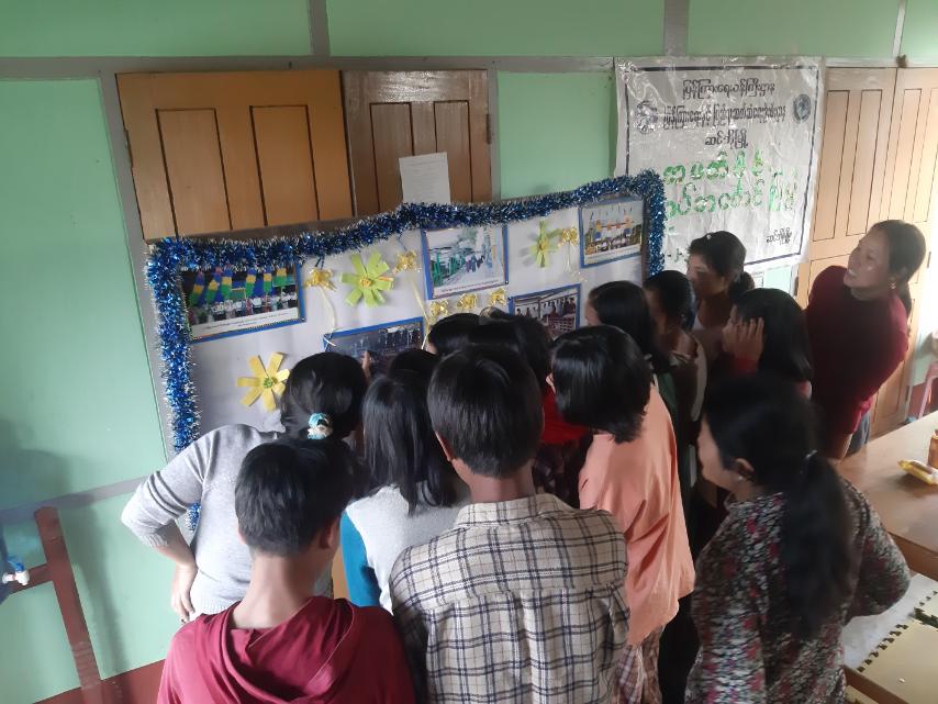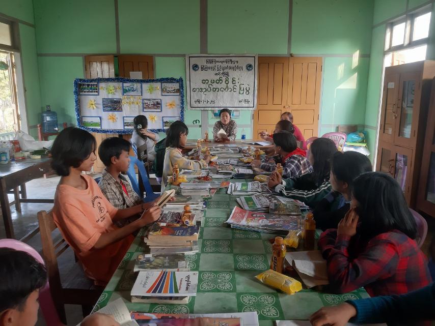 ထို့နောက် ဆင်ဘိုမြို့ ပြန်ကြားရေးနှင့်ပြည်သူ့ဆက်ဆံရေးဦးစီးဌာနမှ ခင်းကျင်းပြသထားသည့် စာအုပ်စာစောင်များနှင့် နံရံကပ်စာစောင်များကို ကျောင်းသား/သူများ စိတ်ဝင်စားစွာ ကြည့်ရှုမှတ်သားခဲ့ကြသည်။