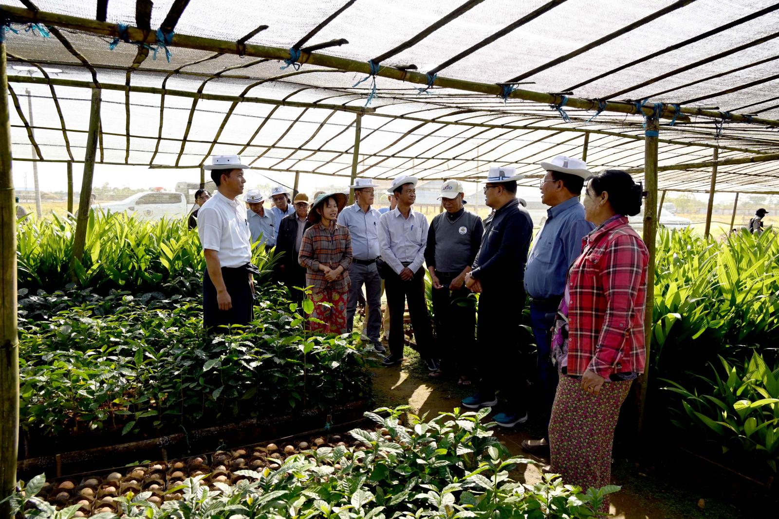 ထိုမှတစ်ဆင့် ပြည်နယ်ဝန်ကြီးချုပ်နှင့် အဖွဲ့ဝင်များသည် အဆိုပါရပ်ကွက်ရှိ လီဆူစာပေနှင့်ရိုးရာယဉ်ကျေးမှုဝင်းအတွင်း ခြံစိုက်တောင်သူ ဦးစိုးမိုးဝင်း၏ ပျိုးဥယျာဉ်သို့ သွားရောက်ပြီး ပျိုးခြံအတွင်း ကွမ်းသီးပျိုးပင်များ၊ ထောပတ်သီးပျိုးပင်များ၊ ကော်ဖီပျိုးပင်များနှင့် နာနတ်ပွင့်ပျိုးပင်များ ပျိုးထောင်စိုက်ပျိုးထားရှိမှုအခြေအနေများကို လှည့်လည်ကြည့်ရှုစစ်ဆေးခဲ့ကြကာ အရောင်းအဝယ်ဖြစ်ထွန်းမှုအခြေအနေတို့ကို မေးမြန်းဆွေးနွေးခဲ့ကြကြောင်း သိရသည်။