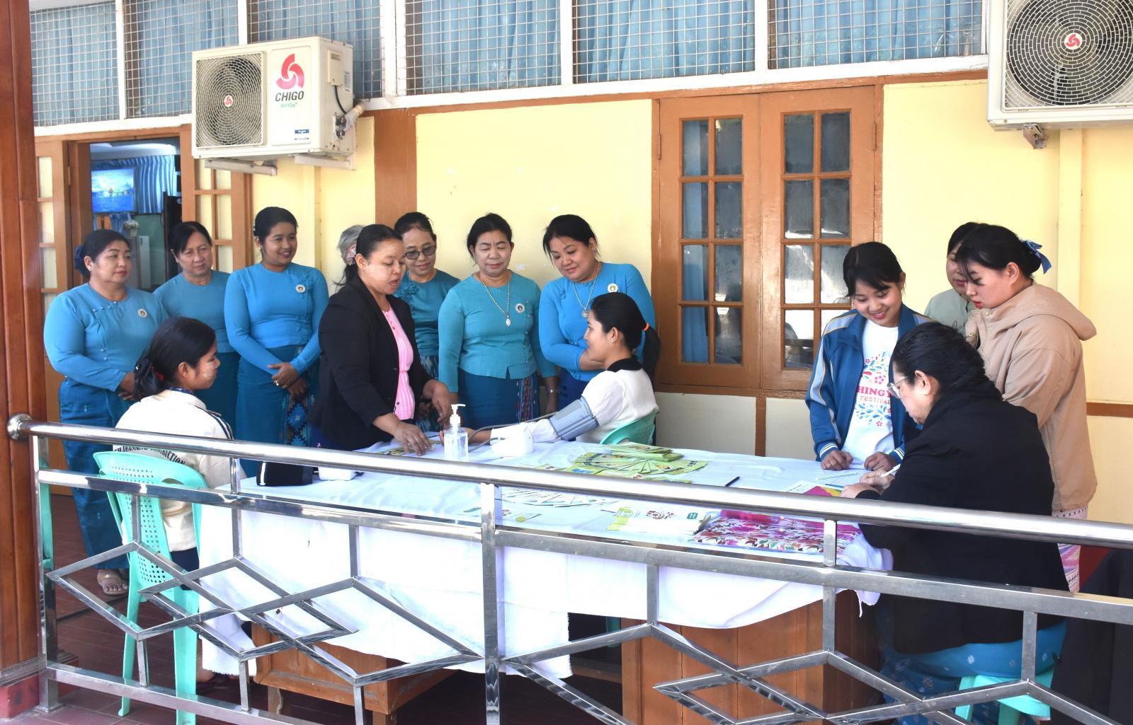 အဲဒီနောက် ပြည်နယ်ပြည်သူ့ကျန်းမာရေးဦးစီးဌာနမှကျန်းမာရေးဝန်ထမ်းများက တက်ရောက်လာကြသော ပြည်နယ်/ခရိုင်/မြို့နယ်များမှ အမျိုးသမီးရေးရာအဖွဲ့နှင့် မိခင်နှင့်ကလေးစောင့်ရှောက်မှု ကြီးကြပ်ရေးအဖွဲ့ဝင်များ အထွေထွေအုပ်ချုပ်ရေးဦးစီးဌာနမှ ဝန်ထမ်းများအား ကိုယ်အလေးချိန်နှင့် အရပ် တိုင်းတာပေးခြင်း၊ သွေးပေါင်ချိန်ပေးခြင်း၊ ဆီးချို/သွေးချို စစ်ဆေးပေးခြင်းအစရှိသော ကျန်းမာရေးစောင့်ရှောက်မှုများကို ဆောင်ရွက်ပေးခဲ့ကြသည်။