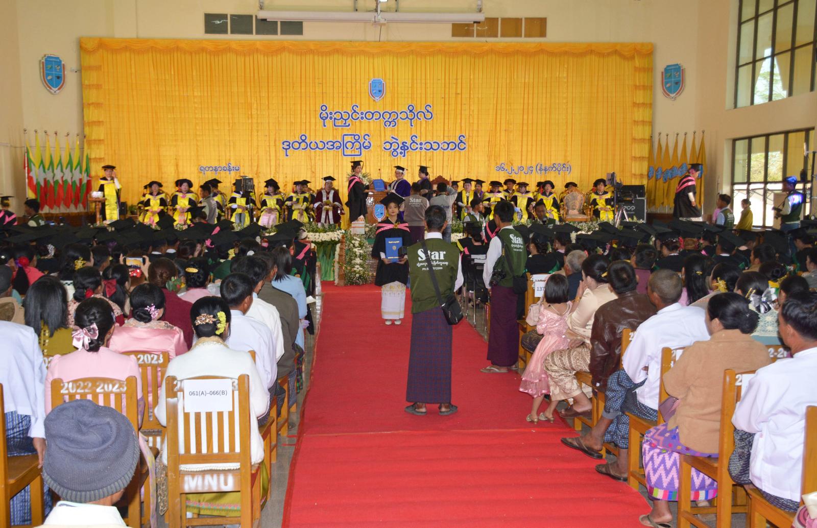 ကချင်ပြည်နယ်၊ မိုးညှင်းခရိုင် မိုးညှင်းတက္ကသိုလ်တွင် ဒုတိယအကြိမ် ဘွဲ့နှင်းသဘင်အခမ်းအနားကို ယနေ့နံနက်(၉)နာရီမှစတင်၍ တက္ကသိုလ်ရတနာခန်းမ၌ ကျင်းပခဲ့ကြောင်း သိရသည်။