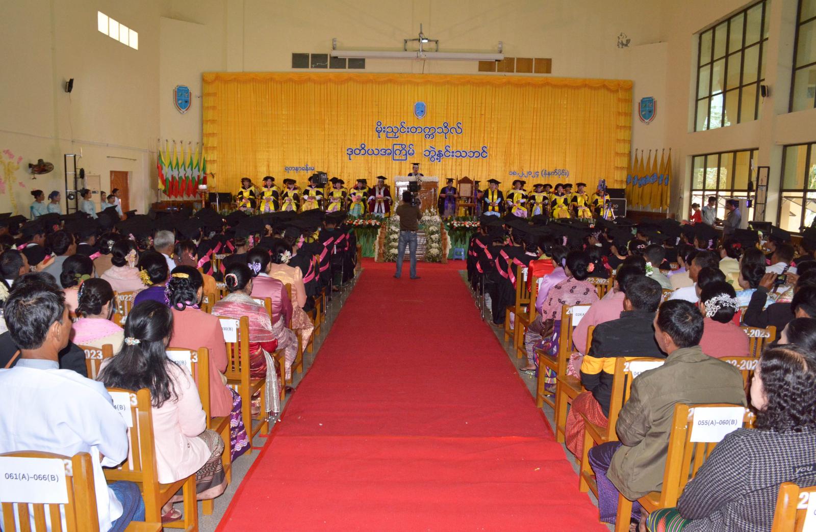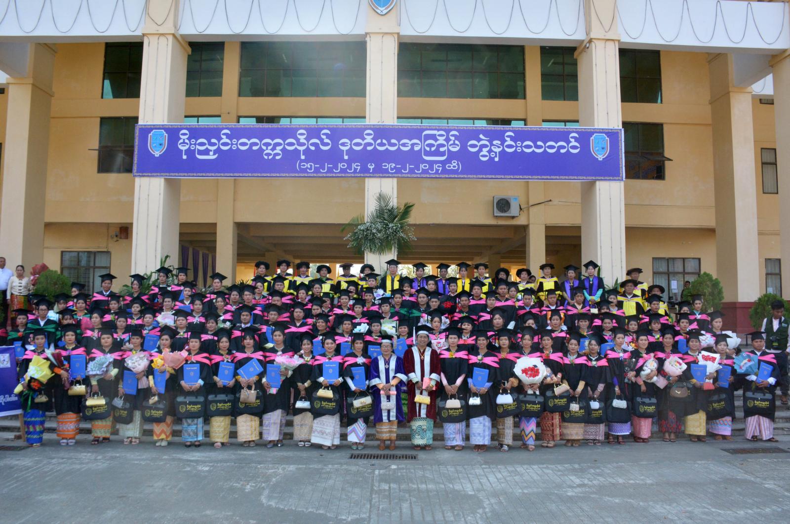 ကချင်ပြည်နယ်၊ မိုးညှင်းခရိုင်၊ မိုးညှင်းတက္ကသိုလ်တွင် ဒုတိယအကြိမ် ဘွဲ့နှင်းသဘင် အခမ်းအနားကို ဖေဖော်ဝါရီလ (၁၅)ရက်နေ့မှ (၁၉)ရက်နေ့အထိ နံနက် ညနေ နှစ်ပိုင်းခွဲ၍ (၅)ရက်တိုင်တိုင် တက္ကသိုလ်ရတနာခန်းမ၌ ကျင်းပအောင်မြင် ပြီးစီးခဲ့ကြောင်း သိရသည်။