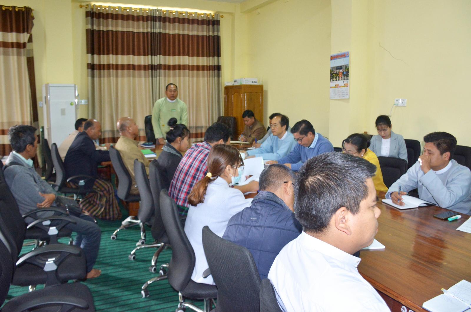 ကချင်ပြည်နယ်၊ မိုးညှင်းခရိုင်၊ မိုးညှင်းမြို့တွင် ခရိုင်အဆင့် ပတ်ဝန်းကျင်စီမံခန့်ခွဲမှုဆိုင်ရာ ကြီးကြပ်မှုဆပ်ကော်မတီ၏ ပထမအကြိမ် လုပ်ငန်းညှိနှိုင်းအစည်းအဝေးကို ယမန်နေ့ နံနက် (၁၀)နာရီက စုပေါင်းရုံးရှိ ခရိုင်အထွေထွေအုပ်ချုပ်ရေးဦးစီးဌာန အစည်းအဝေးခန်းမ၌ ကျင်းပသည်။