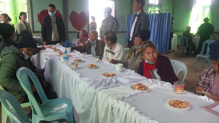 ကချင်ပြည်နယ်၊ ပူတာအိုခရိုင်၊ ဆွမ်ပရာဘွမ်မြို့နယ်အတွင်းရှိ နိုင်ငံ့ဝန်ထမ်းဟောင်းများ ပင်စင်ထုတ်ယူရာနေရာ၌ မြို့နယ်စီမံအုပ်ချုပ်ရေးအဖွဲ့၏ စီမံဆောင်ရွက်မှုဖြင့် အာဟာရဒါနများကျွေးမွေးခြင်းနှင့် ကျန်းမာရေးစောင့်ရှောက်မှုများ ဆောင်ရွက်ပေးခြင်းကို ယမန်နေ့နံနက်ပိုင်းက ပင်စင်ထုတ်ယူရာ မြန်မာ့စီးပွားရေးဘဏ်အနီး(ဘန်ရူခန်းမ)၌ ဆောင်ရွက်ခဲ့ကြောင်း သိရသည်။