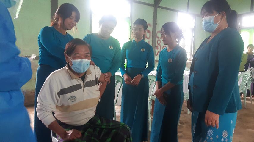 ကာကွယ်ဆေးထိုးနှံခြင်းကို မြို့နယ်မိခင်နှင့်ကလေးကျန်းမာရေးဌာန၊ မြို့နယ်ကျန်းမားရေးမှူး အဆင့်(၁) ဒေါ်ဂျေလုဂျာ ဦးဆောင်၍ ဆရာမ ဒေါ်ဘောက်ဆိုင်း (ဘက်စုံသားဖွားဆရာမ)နှင့် ကျန်းမာ ရေးဝန်ထမ်းတို့က ကျန်းမာရေး လမ်းညွှန်ချက်များနှင့်အညီ ဆေးမထိုးမီ ကျန်းမာရေး စစ်ဆေးခြင်းနှင့် ကျန်းမာရေးဆိုင်ရာ အချက်အလက်များ မှတ်တမ်းရေးသွင်းခြင်းတို့ကို ဆောင်ရွက်ပြီး ထိုးနှံပေးခြင်းဖြစ်ကြောင်းနှင့် မြို့နယ်စီမံအုပ်ချုပ်ရေးအဖွဲ့ ဥက္ကဋ္ဌ ဦးခင်မောင်မြင့်နှင့် အဖွဲ့ဝင်များ၊ အထွေထွေအုပ်ချုပ်ရေးဦးစီးဌာန ဝန်ထမ်းများ၊ မြို့နယ်အမျိုးသမီးရေးရာ မိခင်နှင့်ကလေးစောင့်ရှောက်ရေး အသင်းအဖွဲ့ဝင်များမှ ကူညီဆောင်ရွက်ပေးခဲ့ကြောင်း သိရသည်။