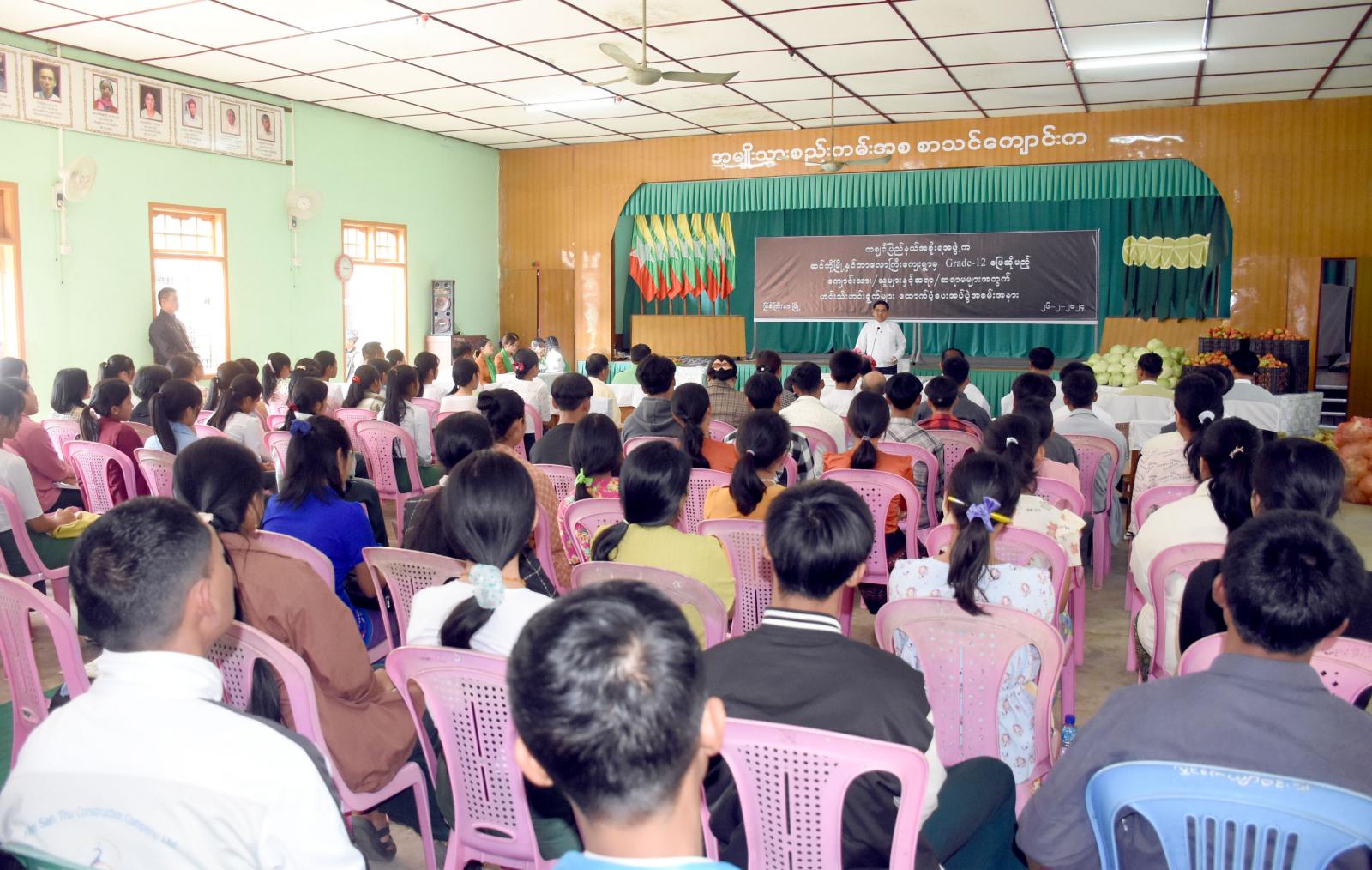 ကချင်ပြည်နယ် အစိုးရအဖွဲ့အနေဖြင့် တက္ကသိုလ်ဝင်တန်း အောင်ချက်မြင့်မားရေးနှင့် လူ့စွမ်းအားအရင်းအမြစ် ဖွံ့ဖြိုးတိုးတက်စေရေးအတွက် လေ့ကျင့်သင်ကြားမှုခံယူနေသော ကျောင်းသား/ ကျောင်းသူများ၊ သင်တန်းသား/သင်တန်းသူများအတွက် စားသောက်ကုန်များကို ပြည်နယ်ဝန်ကြီး ချုပ် ဦးခက်ထိန်နန်က ဖေဖော်ဝါရီ ၂၆ ရက် ညနေ ၃ နာရီခွဲက သွားရောက်ထောက်ပံ့ပေးအပ်ခဲ့သည်။