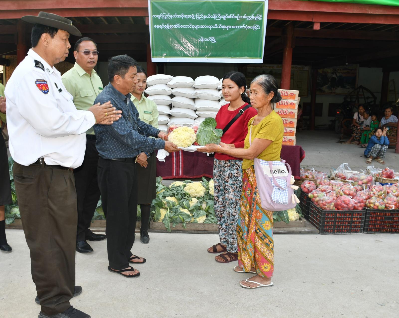ကချင်ပြည်နယ် ဗန်းမော်မြို့တွင် ပြည်နယ်အစိုးရအဖွဲ့၏ အစီအစဉ်ဖြင့် ဗန်းမော်မြို့အတွင်းရှိ တစ်နိုင်တစ်ပိုင် ရာသီသီးနှံစိုက်ပျိုးတောင်သူများ၏ ထွက်ကုန်များကို ဝယ်ယူခဲ့ပြီး မန်စီမြို့နယ်မှ ယာယီနေ့ရပ်စွန့်ခွာအိမ်ထောင်စုများအား ရာသီသီးနှံများ ထောက်ပံ့ပေးအပ်ခြင်းကို ဖေဖော်ဝါရီ ၂၆ ရက် ညနေ ၄ နာရီခန့်က ပေါက်ကုန်းရပ်ကွက်ရှိ သုခဝတီဘုန်းတော်ကြီးကျောင်းနှင့် ဇေယျသုခဘုန်းတော်ကြီးကျောင်းတို့၌ ပေးအပ်ခဲ့ကြောင်း သိရသည်။