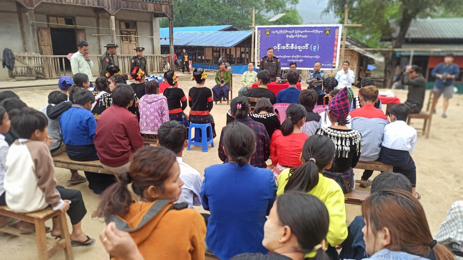 ထိုသို့ ဆောင်ရွက်ပေးရာတွင် ချီဖွေခရိုင် လူဝင်မှုကြီးကြပ်ရေးနှင့်ပြည်သူ့အင်အားဝန်ကြီးဌာနမှ ခရိုင်ဦးစီးမှူး ဒုတိယညွှန်ကြားရေးမှူးဦးတင်ထွန်းက သိသင့်သိထိုက်သည့် အချက်အလက်များနှင့် ဌာနမှ Biometric လုပ်ငန်းဆောင်ရွက်နေမှုများကို လည်းကောင်း၊ မြို့နယ်စီမံအုပ်ချုပ်ရေးအဖွဲ့အဖွဲ့ဥက္ကဋ္ဌ ဦးချစ်စမ်းအောင်က နိုင်ငံသားစိစစ်ရေးကတ် ကိုင်ဆောင်သူများ၏ အခွင့်အရေးများကိုလည်းကောင်း၊ မြို့နယ်လူဝင်မှုကြီးကြပ်ရေးနှင့်ပြည်သူ့အင်အားဝန်ကြီးဌာနမှ မြို့နယ်ဦးစီးမှူး လက်ထောက်ညွှန်ကြားရေးမှူး ဦးသန်းထွန်းဦး က ၂၀၂၄ ခုနှစ် လူဦးရေနှင့် အိမ်အကြောင်းအရာ သန်းခေါင်စာရင်းကောက်ယူနိုင်ရေးအကြို လုပ်ငန်းများဆောင်ရွက်နေမှုနှင့် နိုင်သားစိစစ်ရေးကတ်များ ကွင်းဆင်းဆောင်ရွက်နေမှု အခြေအနေများကိုလည်းကောင်း အသီးသီး ရှင်းလင်းပြောကြားကြသည်။