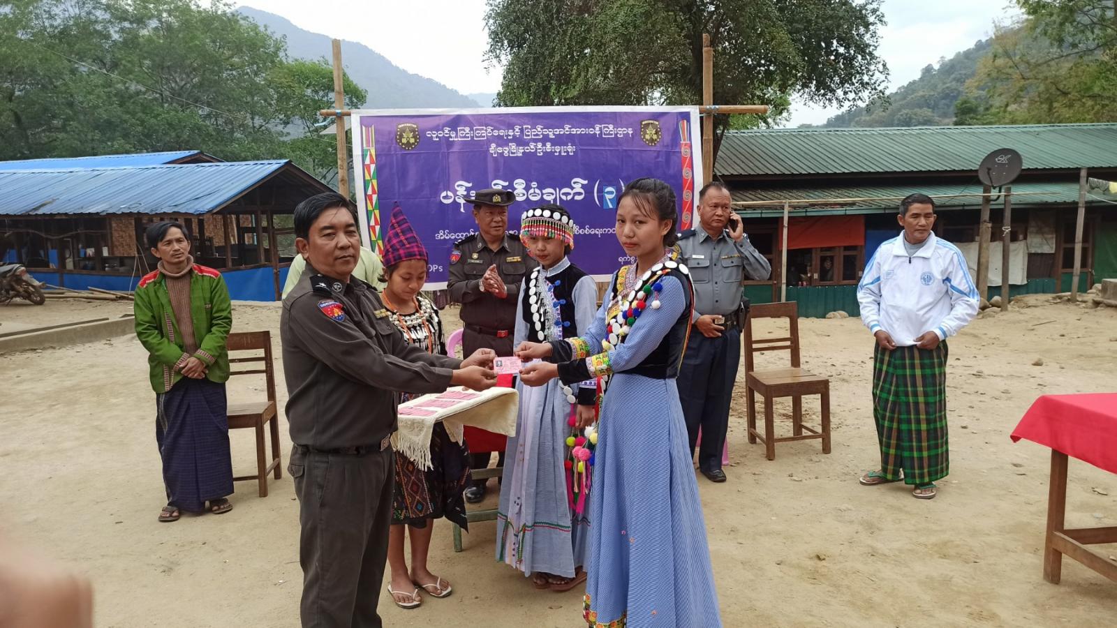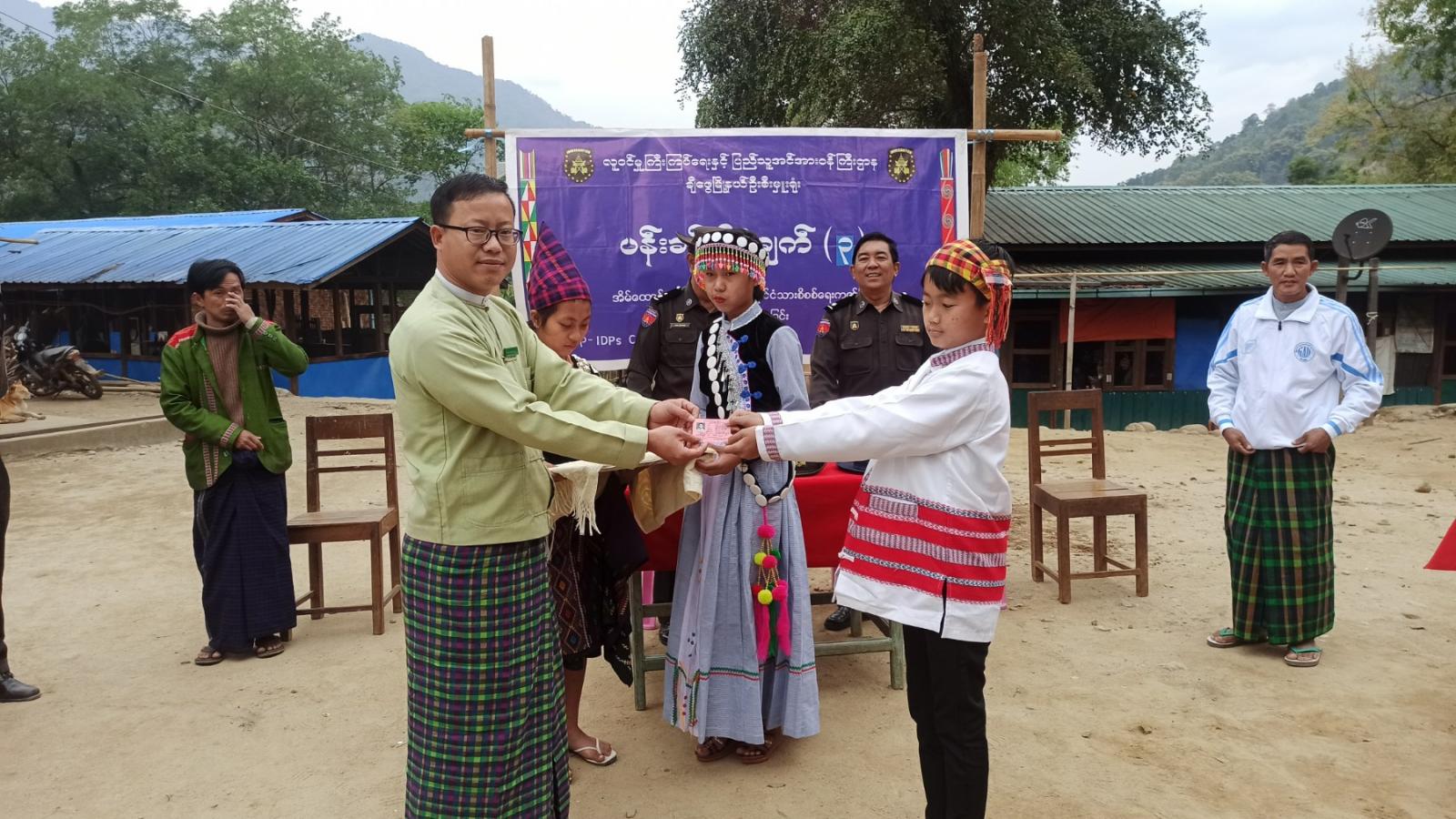 ထို့နောက် ချီဖွေခရိုင်လူဝင်မှုကြီးကြပ်ရေးနှင့်ပြည်သူ့အင်အားဝန်ကြီးဌာနမှ ခရိုင်ဦးစီးမှူးနှင့် တာဝန်ရှိသူများ က (IDPs) စခန်းရှိ ပြည်သူ (၆၈) ဦးအား နိုင်ငံသားစိစစ်ရေးကတ်ပြားများ ပြုလုပ်ပေးပြီး ပြည်သူများလက်ဝယ်ရောက် ပေးအပ်ခဲ့ကြသည်။
