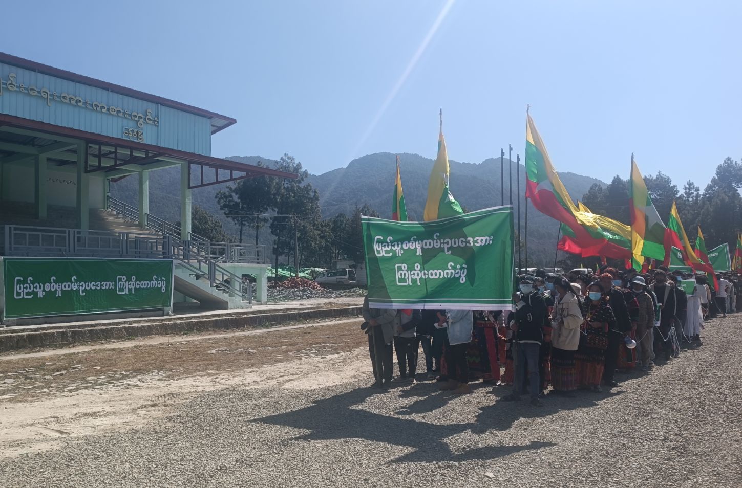 ကချင်ပြည်နယ်၊ ပန်ဝါမြို့တွင် ပြည်သူ့စစ်မှုထမ်းဥပဒေအား ကြိုဆိုထောက်ခံ စီတန်းလှည့်လည်ခြင်းကို ယမန်နေ့ နံနက် ၉ နာရီခွဲက ဒေသခံပြည်သူများ ဆောင်ရွက်ခဲ့ကြသည်။