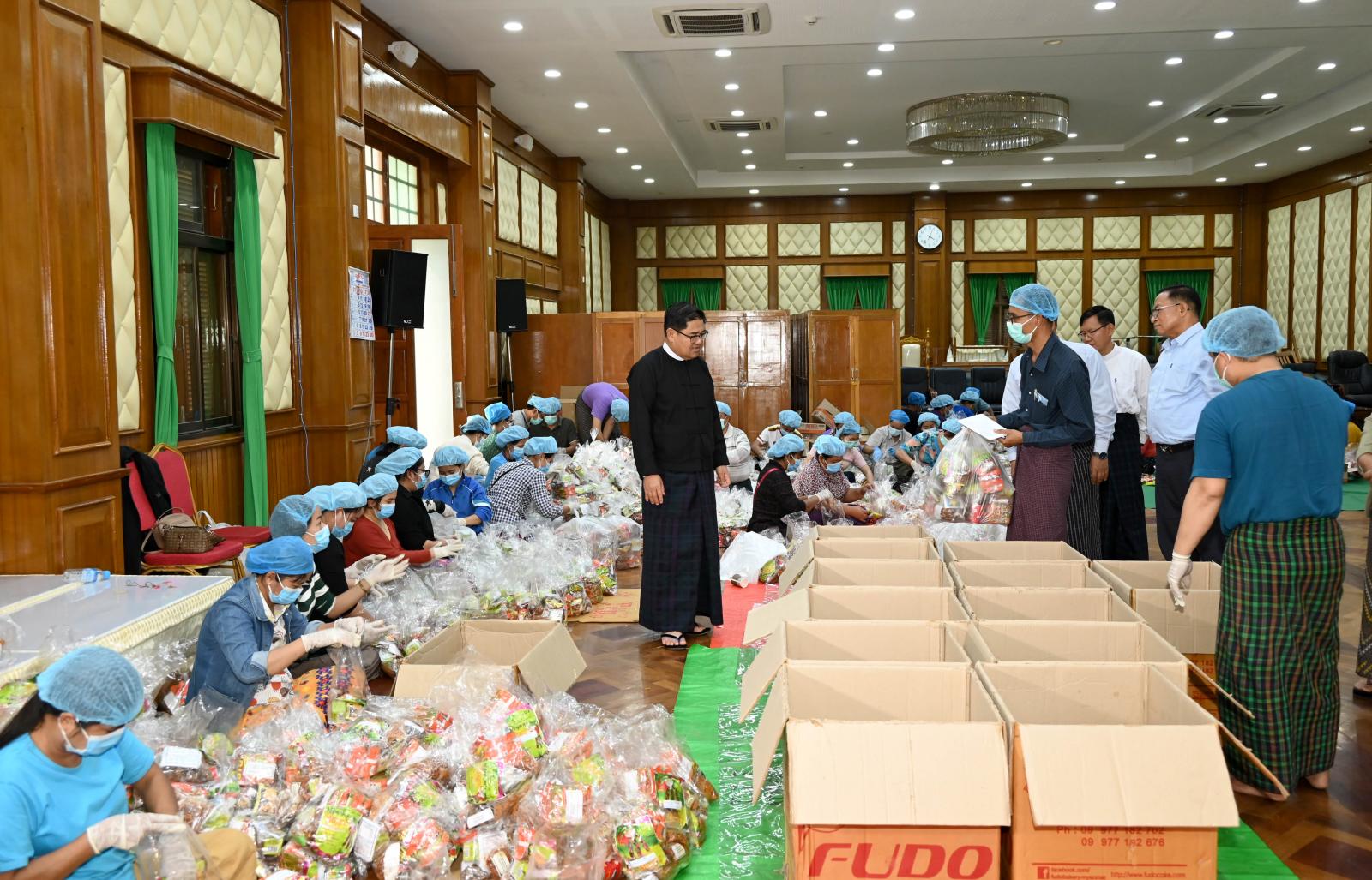 ထိုသို့ ထောက်ပံ့ပေးအပ်မှုများအတွက် ကချင်ပြည်နယ်အစိုးရအဖွဲ့အနေဖြင့် ဝန်ကြီးဌာနအလိုက် ကြီးကြပ်မှုအောက်ရှိ ဌာနဆိုင်ရာများ၊ ပြည်နယ်တရားလွှတ်တော်၊ ပြည်နယ်ဥပဒေချုပ်ရုံးနှင့် ခရိုင်/ မြို့နယ်အထွေထွေအုပ်ချုပ်ရေးဦးစီးဌာနတို့ လှူဒါန်းပါဝင်မှုတို့အား ပြည်နယ်အစိုးရအဖွဲ့ရုံးဝင်း အတွင်း ဝန်ထမ်းများစုဖွဲ့၍ စားစရာအမယ်များကို ချက်ပြုတ်ပြင်ဆင်ခဲ့ကြရာ မတ် ၃ ရက် ညနေပိုင်းက ပြည်နယ်ဝန်ကြီးချုပ်နှင့် ဇနီး၊ ပြည်နယ်ဝန်ကြီးများက လုံခြုံရေးတပ်ဖွဲ့ဝင် (၁၅၀၀)ဦးတို့အတွက် ထောက်ပံ့ပေးနိုင်ရေး ပါဝင်သည့် အမယ်ပစ္စည်းမျိုးစုံတို့အား စနစ်တကျထုတ်ပိုးပြင်ဆင်နေမှုများကို လှည့်လည်ကြည့်ရှုအားပေးခဲ့ကြကာ ဝန်ထမ်းများအတွက် ထောက်ပံ့ငွေများနှင့် စားသောက်ဖွယ်များကို ထောက်ပံ့ပေးအပ်ခဲ့ကြောင်း သိရသည်။
