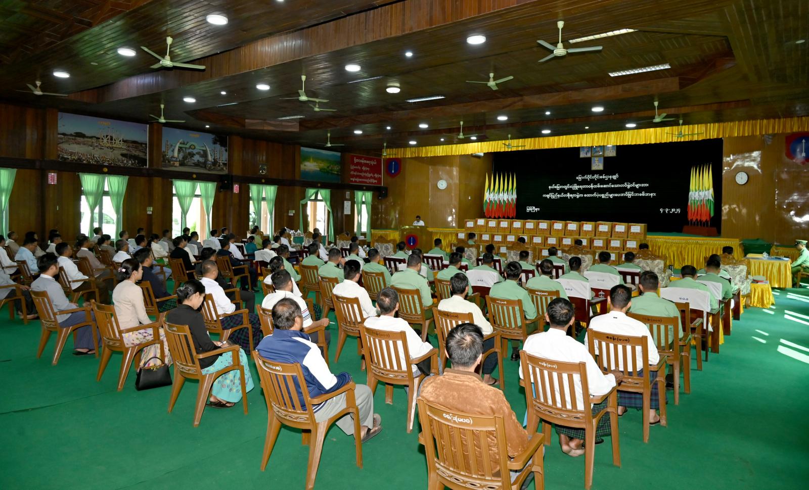 ကချင်ပြည်နယ်အစိုးရအဖွဲ့က နိုင်ငံတော်လုံခြုံရေး တာဝန်ထမ်းဆောင်နေကြသည့် မြောက်ပိုင်းတိုင်းစစ်ဌာနချုပ်မှ လုံခြုံရေးတပ်ဖွဲ့ဝင်များအား ဂုဏ်ပြုချီးမြှင့်ငွေ၊ အသင့်စားသုံးနိုင်သော စားသောက်ကုန်ပစ္စည်းများ ထောက်ပံ့ပေးခြင်းအခမ်းအနားကို ယမန်နေ့ နံနက် ၉ နာရီက မြောက်ပိုင်းတိုင်းစစ်ဌာနချုပ်၊ ဗလမင်းထင်ခန်းမ၌ ကျင်းပပြုလုပ်ခဲ့သည်။