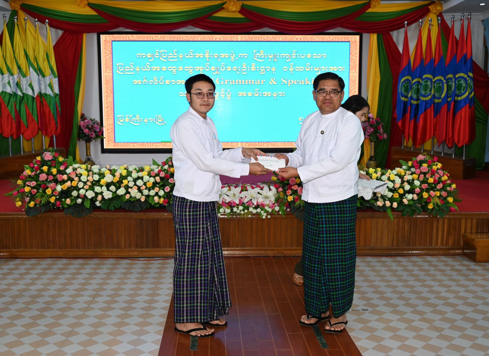 ဆက်လက်၍ ပြည်နယ်ဝန်ကြီးချုပ်က အင်္ဂလိပ်စာသင်တန်းနည်းပြ ဆရာဦးမွန်ဆိုင်းနော်အား အမှတ်တရလက်ဆောင်များပေးအပ်ခဲ့ပြီး သင်တန်းနည်းပြက နှုတ်ခွန်းဆက်စကားနှင့် သင်တန်းဖွင့် လှစ်သင်ကြားသွားမည့် အချက်အလက်များ၊ ရရှိနိုင်သည့် အကျိုးကျေးဇူးများကို ရှင်းလင်းတင်ပြခဲ့သည်။ အဆိုပါ သင်တန်းကို ပြည်နယ်အထွေထွေအုပ်ချုပ်ရေးဦးစီးဌာနမှ အရာထမ်း/ အမှုထမ်း (၃၀) ဦးတို့ တက်ရောက်ကြမည်ဖြစ်ပြီး (၁၈) ရက်ကြာ ဖွင့်လှစ်ပို့ချပေးသွားမည်ဖြစ်ကြောင်း သိရသည်။