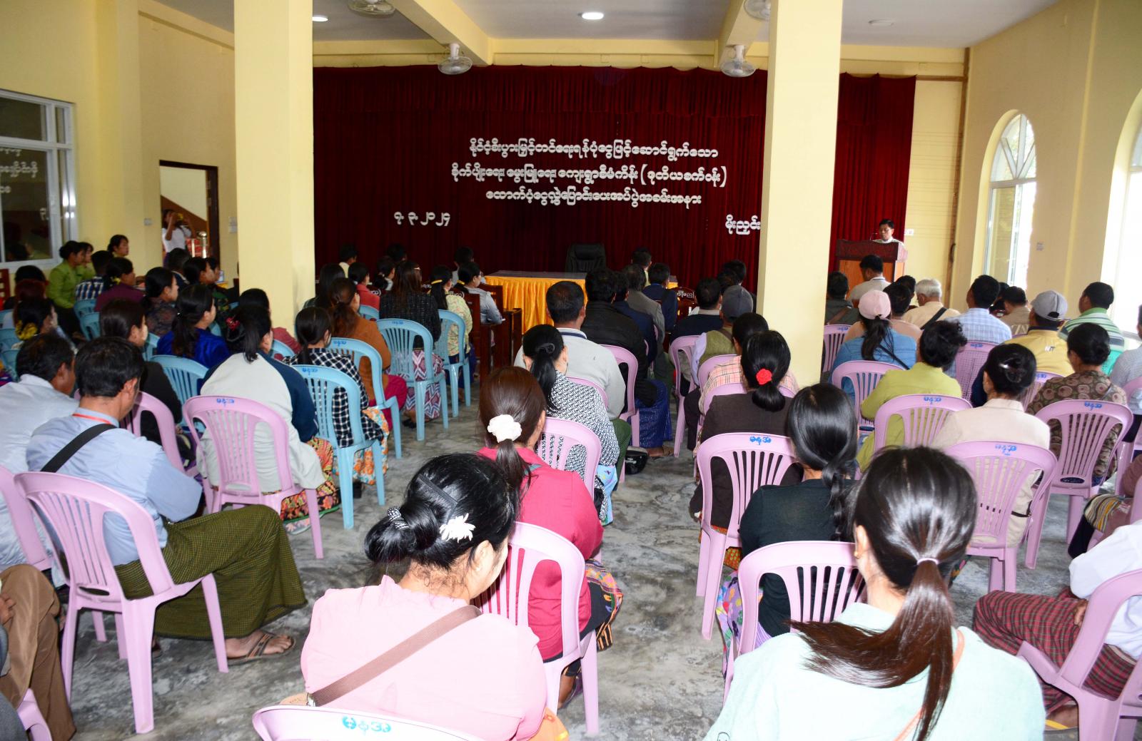 အဆိုပါ အခမ်းအနားတွင် ဒုတိယခရိုင် အုပ်ချုပ်ရေးမှူး ဦးကိုကိုလှိုင်က အဖွင့်အမှာစကား ပြောကြားပြီး မြို့နယ်အဆင့် နိုင်ငံ့စီးပွားမြှင့်တင်ရေးကြီးကြပ်မှုကော်မတီ ဥက္ကဋ္ဌ ဦးမြတ်ခိုင်ကိုက နိုင်ငံ့စီးပွားမြှင့်တင်ရေး ရန်ပုံငွေဖြင့် အကောင်အထည်ဖော် ဆောင်ရွက်လျက်ရှိသော စိုက်ပျိုးရေးနှင့် မွေးမြူရေး ကျေးရွာစီမံကိန်း (ဒုတိယစက်ဝန်း) ထောက်ပံ့ငွေများ လွှဲပြောင်းပေးအပ်ခြင်းနှင့် ပတ်သက်၍ ရှင်းလင်းပြောကြားသည်။