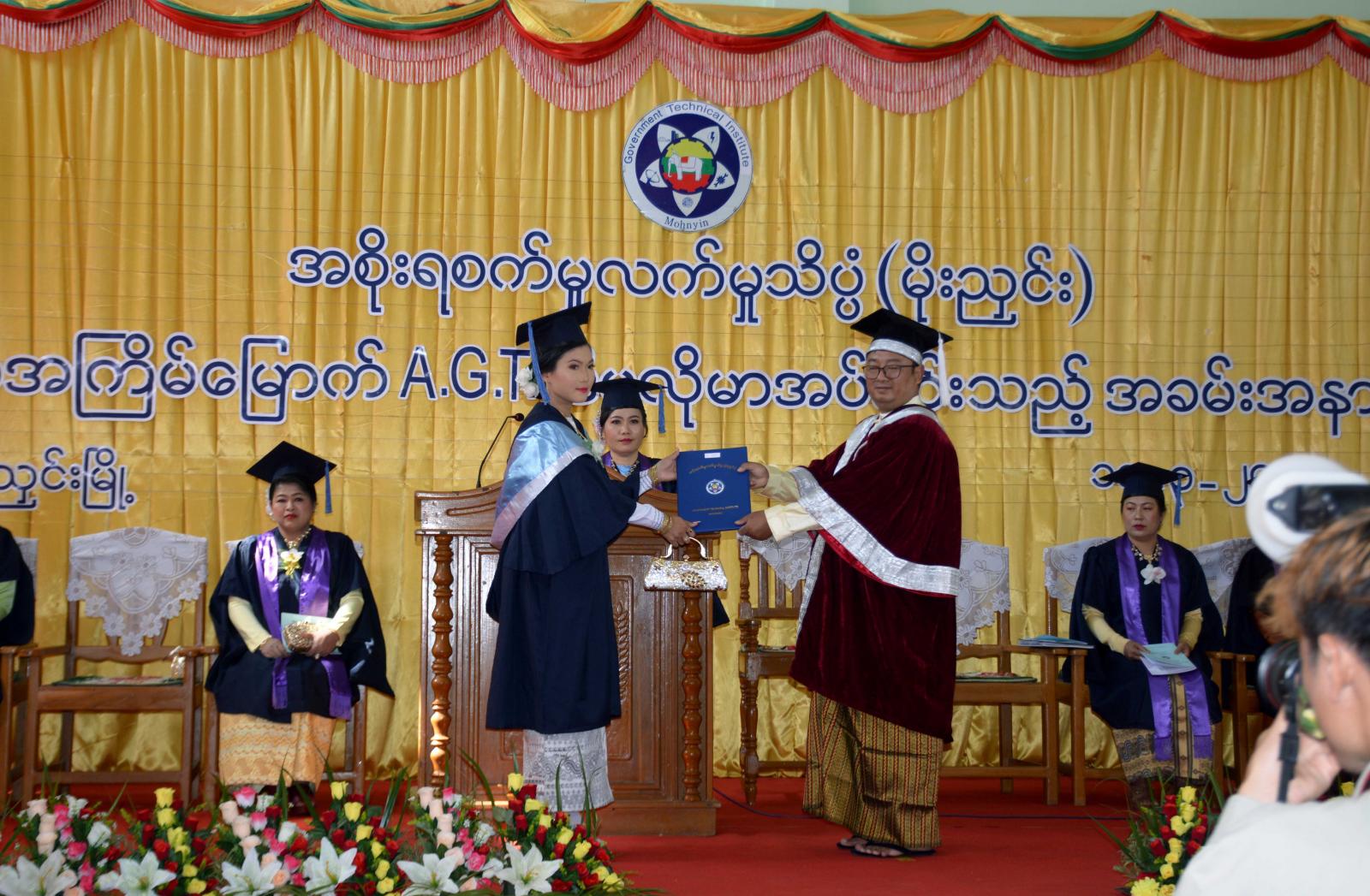 ထို့နောက် ဒီပလိုမာလက်မှတ်များပေးအပ်ရာ၌ ၂၀၂၂-၂၀၂၃ ပညာသင်နှစ်တွင် မြို့ပြအင်ဂျင်နီယာမှ ကျောင်းသားကျောင်သူ (၉)ဦး၊ လျှပ်စစ်ဆက်သွယ်ရေးမှ ကျောင်းသား ကျောင်းသူ (၁၀)ဦး၊ လျှပ်စစ်စွမ်းအားမှ ကျောင်းသား/ကျောင်းသူ (၆)ဦး၊ စက်မှုအင်ဂျင်နီယာမှ ကျောင်းသား/ကျောင်းသူ (၁၁)ဦးနှင့် သုတနည်းပညာမှ ကျောင်းသား/ကျောင်းသူ(၈)ဦး စုစုပေါင်း ကျောင်းသား/ကျောင်းသူ (၄၄)ဦးကို ကျောင်းအုပ်ကြီးက(A.G.T.I) ဒီပလိုမာလက်မှတ်များ အပ်နှင်းပေးအပ်ခဲ့ကြောင်း သိရသည်။