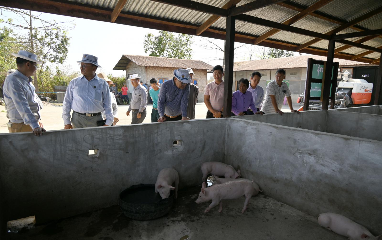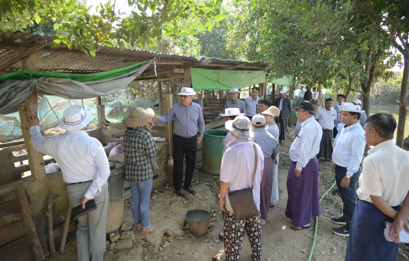 ထို့နောက် အဆိုပါရပ်ကွက်အတွင်း တောင်သူဦးကြန်မင်း၏ ဘက်စုံမွေးမြူရေးခြံ၌ ဝက်များမွေးမြူထားရှိမှု၊ ဒေသကြက်များ မွေးမြူထားရှိမှု၊ ငါးမွေးကန်များအား လှည့်လည်ကြည့်ရှုစစ်ဆေးခဲ့ကြပြီး ဝက်နှင့်ကြက် ဈေးကွက်ရရှိမှုအခြေအနေ၊ ဝက်ခြံများ အဆင့်မြင့်တင်နိုင်ရေး ရန်ပုံငွေပံ့ပိုးပေးနိုင်ရေးနှင့် လိုအပ်သည့်တိရစ္ဆာန်ရောဂါကာကွယ်ဆေးများ ထိုးနှံ၊ ကျွေးမွေးပေးနိုင်ရေးဌာနဆိုင်ရာ တာဝန်ရှိသူများနှင့် ဖြည့်ဆည်းဆောင်ရွက်ပေးခဲ့သည်။