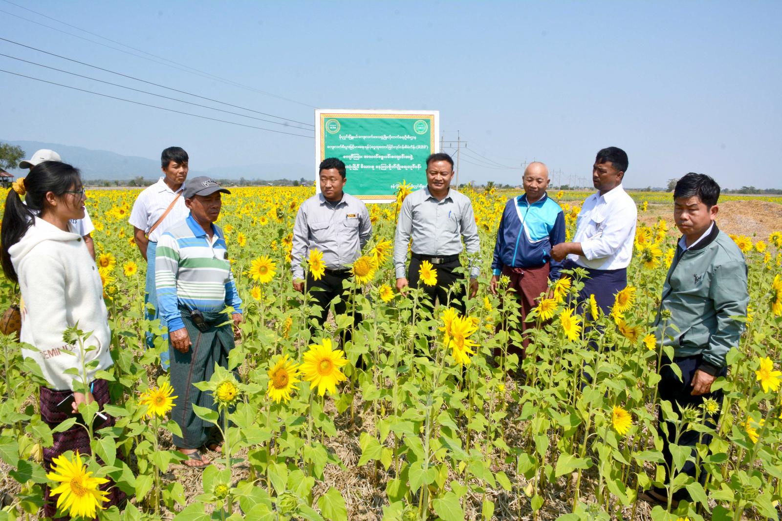 ထို့နောက် စီမံကိန်းလုပ်ငန်တွင် စိုက်ပျိုးရေးလုပ်ငန်းဖြင့် အကောင်အထည်ဖော်ဆောင်ရွက်သည့် နေကြာစိုက်ပျိုးအောင်မြင် ဖြစ်ထွန်းနေမှုအခြေအနေများအား သက်ဆိုင်ရာတာဝန်ရှိသူများနှင့် ကျေးရွာကော်မတီဝင်များက ကွင်းဆင်းကြည့်ရှုခဲ့ကြကြောင်း သိရသည်။