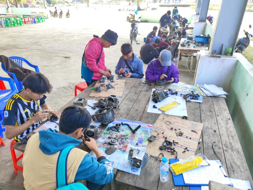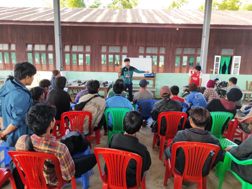 အဆိုပါသင်တန်းသို့ ပူတာအိုခရိုင်အတွင်းရှိ မြို့နယ်များမှ သင်တန်းသားစုစုပေါင်း(၂၀)ဦးတို့အား မော်တော်ဆိုင်ကယ်အစိတ်အပိုင်းများနှင့် အလုပ်လုပ်ပုံ၊ ဆိုင်ကယ်ကိုယ်ထည် ကာဗာများ ဖြုတ်/တပ်ခြင်း၊ ကာဗျူရေတာ ဖြုတ်/တပ်စစ်ဆေးခြင်း၊ အင်ဂျင်ဟက်နှင့် အင်ဂျင်ဘလောက်များ ဖြုတ်/တပ်စစ်ဆေးခြင်း၊ သံလိုက် အုံနှင့်ကလပ်အုံ ဖြုတ်/တပ်စစ်ဆေးခြင်း၊ ဂီယာဘောက် ဖြုတ်/တပ်စစ်ဆေးခြင်း၊ မော်တော်ဆိုင်ကယ် မီးပေး စနစ်ပိုင်းဆိုင်ရာချိတ်ဆက် အလုပ်လုပ်ပုံများနှင့် သွယ်တန်းခြင်းများကို ဖေဖော်ဝါရီ(၂၀)ရက်မှ မတ်(၂၀) ရက်နေ့အထိ သင်တန်းကာလတစ်လကြာ ခရိုင်အသေးစားစက်မှုလက်မှုလုပ်ငန်းဦးစီးဌာနမှ သင်တန်းနည်းပြများက စာတွေ့(၃၀) ရာခိုင်နှုန်း လက်တွေ့(၇၀)ရာခိုင်နှုန်း သင်ကြားပို့ချပေးခဲ့ခြင်း ဖြစ်ကြောင်း သိရသည်။