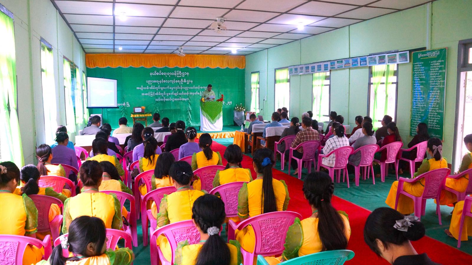 နယ်စပ်ရေးရာဝန်ကြီးဌာန၊ ပညာရေးနှင့်လေ့ကျင့်ရေးဦးစီးဌာန၊ အမျိုးသမီးအိမ်တွင်းမှု သက်မွေးလုပ်ငန်းပညာသင်တန်းကျောင်း (ပူတာအို)၏ အဆင့်မြင့် အိမ်တွင်းမှု စက်ချုပ်သင်တန်း အမှတ်စဉ် (၆) သင်တန်းဆင်းပွဲ အခမ်းအနားကို ယမန်နေ့ နံနက်(၉)နာရီက ပူတာအိုမြို့ အမျိုးသမီးအိမ်တွင်းမှု သက်မွေးလုပ်ငန်းပညာ သင်တန်းကျောင်းခန်းမ၌ ကျင်းပသည်။