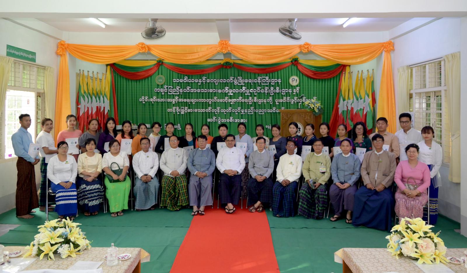 ယင်းနောက် သင်တန်းထူးချွန်ဆုများကို ပေးအပ်ချီးမြှင့်ရာ ပြည်နယ်ဝန်ကြီးချုပ်က သင်တန်းထူးချွန် ပထမဆုရ သင်တန်းသားအား လည်းကောင်း၊ ပြည်နယ်စီးပွားရေးရာဝန်ကြီးက သင်တန်းထူးချွန် ဒုတိယဆုရ သင်တန်းသားအား လည်းကောင်း၊ ပြည်နယ်သယံဇာတရေးရာဝန်ကြီးကသင်တန်း ထူးချွန်တတိယဆုရ သင်တန်းသူအား လည်းကောင်း၊ ပြည်နယ်လူမှုရေးရာဝန်ကြီးက သင်တန်းသား/ သင်တန်းသူအားလုံးအတွက် သင်တန်းဆင်းလက်မှတ်များနှင့် သင်တန်းထွက်ကုန် ချောပစ္စည်းများကိုလည်းကောင်း အသီးသီးပေးအပ် ချီးမြှင့်ကြရာ သင်တန်းသားတစ်ဦးက ကျေးဇူးတင်စကားပြန်လည် ပြောကြားသည်။