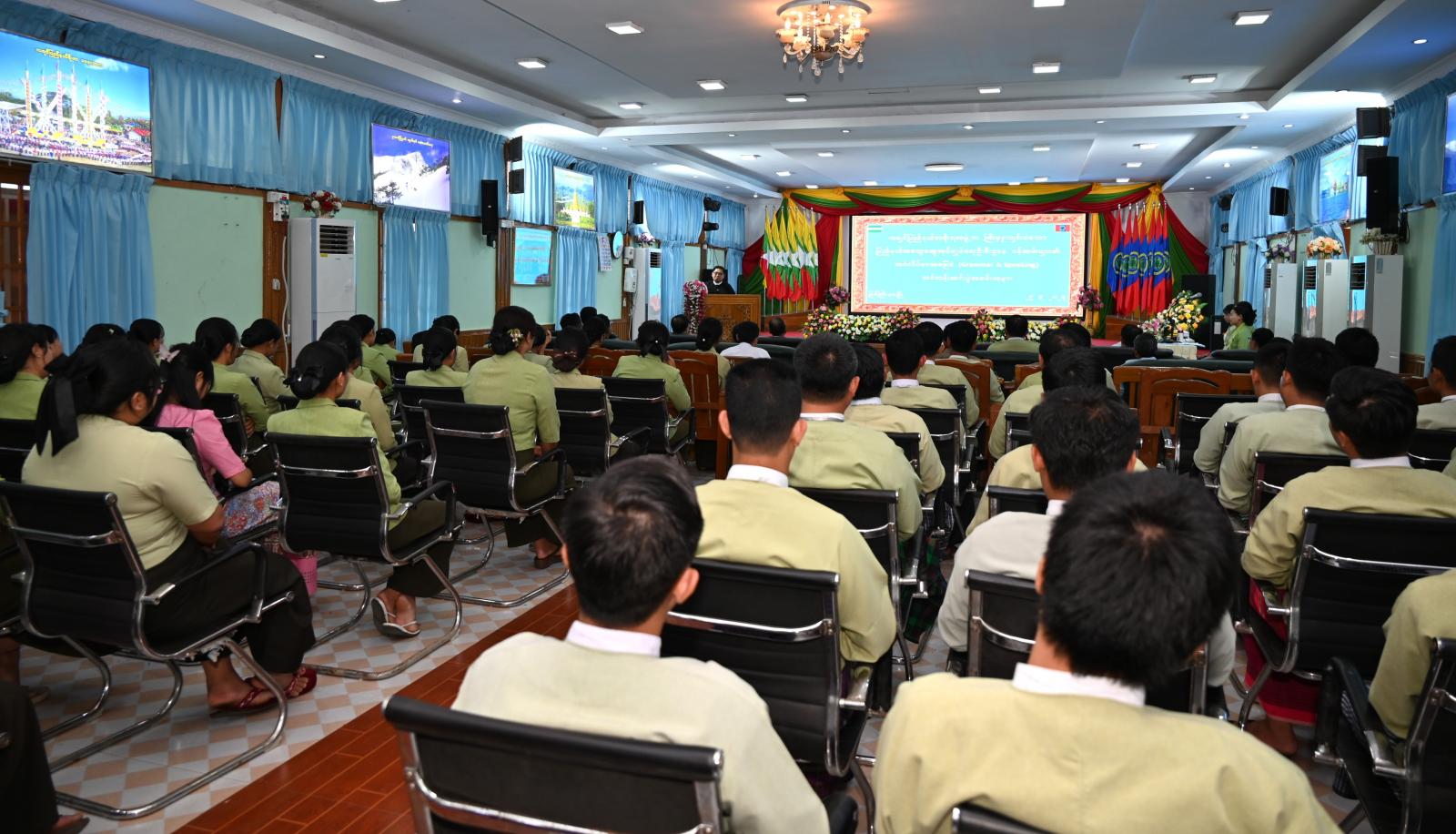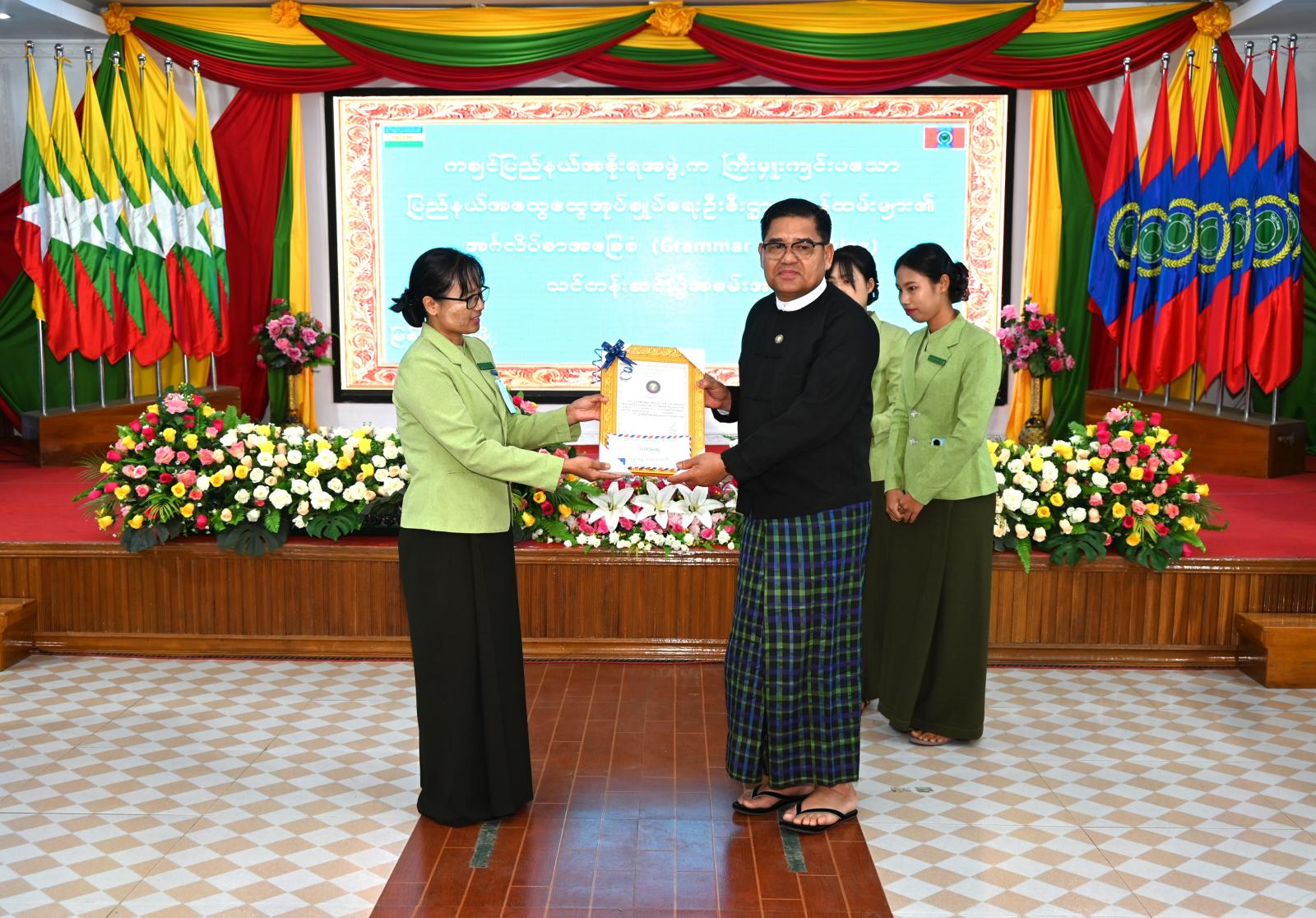 ဆက်လက်၍ သင်တန်းနည်းပြက သင်တန်းဆိုင်ရာအချက်အလက်များနှင့် သင်တန်းအပေါ် သုံးသပ်ရှင်းလင်းတင်ပြပြီး ပြည်နယ်ဝန်ကြီးချုပ်၊ ပြည်နယ်တရားလွှတ်တော်တရားသူကြီးချုပ်၊ ပြည်နယ်ဝန်ကြီးများနှင့် ပြည်နယ်အစိုးရအဖွဲ့ အတွင်းရေးမှူးတို့က သင်တန်းနည်းပြအတွက် ဂုဏ်ပြုချီးမြှင့်ငွေများနှင့် အင်္ဂလိပ်စာ Grammar ပိုင်းတွင် ပထမ၊ ဒုတိယနှင့် တတိယဆုရသင်တန်းသား/ သင်တန်းသူများနှင့် အင်္ဂလိပ်စာ Speaking ပိုင်းတွင် ပထမ၊ ဒုတိယနှင့် တတိယဆုရသင်တန်းသား/ သင်တန်းသူများအား ဂုဏ်ပြုချီးမြှင့်ငွေနှင့် ဂုဏ်ပြုမှတ်တမ်းလွှာများကို အသီးသီးပေးအပ်ချီးမြှင့်ခဲ့ကြရာ သင်တန်းသူတစ်ဦးက ကျေးဇူးတင်စကားပြန်လည်ပြောကြားခဲ့ကြောင်း သိရသည်။