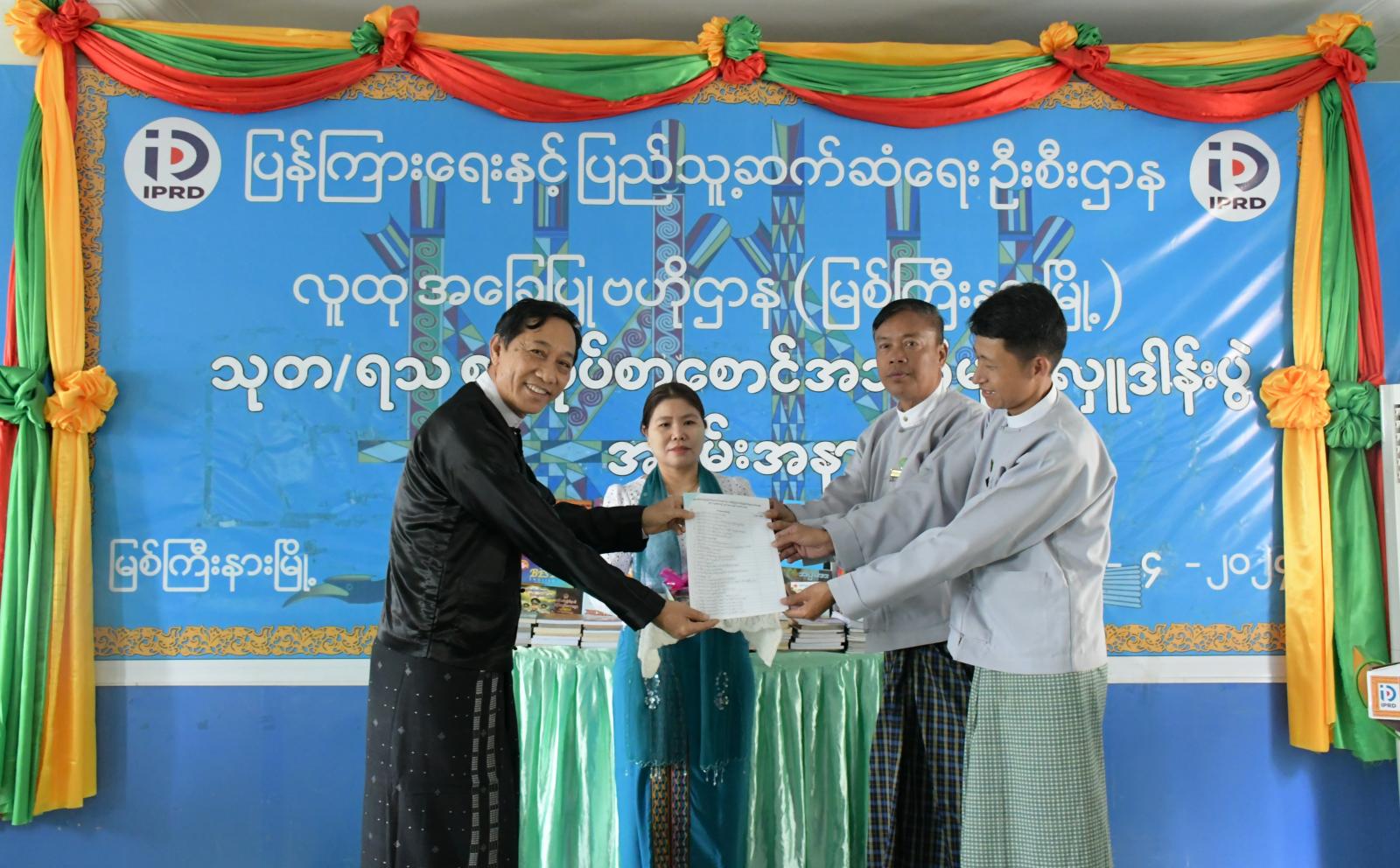 ကချင်ပြည်နယ်၊ မြစ်ကြီးနားမြို့၊ မော်ဖောင်းကျေးရွာရှိ မော်ဖောင်းနယ်မြေ (၈) ခေတ်မီစံပြကျေးရွာ စာကြည့်တိုက်အတွက် သုတ/ရသ စာအုပ်စာစောင်အသစ်များ လှူဒါန်းပေးအပ်ပွဲ အခမ်းအနားကို မြစ်ကြီးနားမြို့၊ လူထုအခြေပြုဗဟိုဌာန (Community Centre) ဘက်စုံသုံးခန်းမ ၌ ယနေ့နံနက် ၉ နာရီခွဲက ကျင်းပသည်။