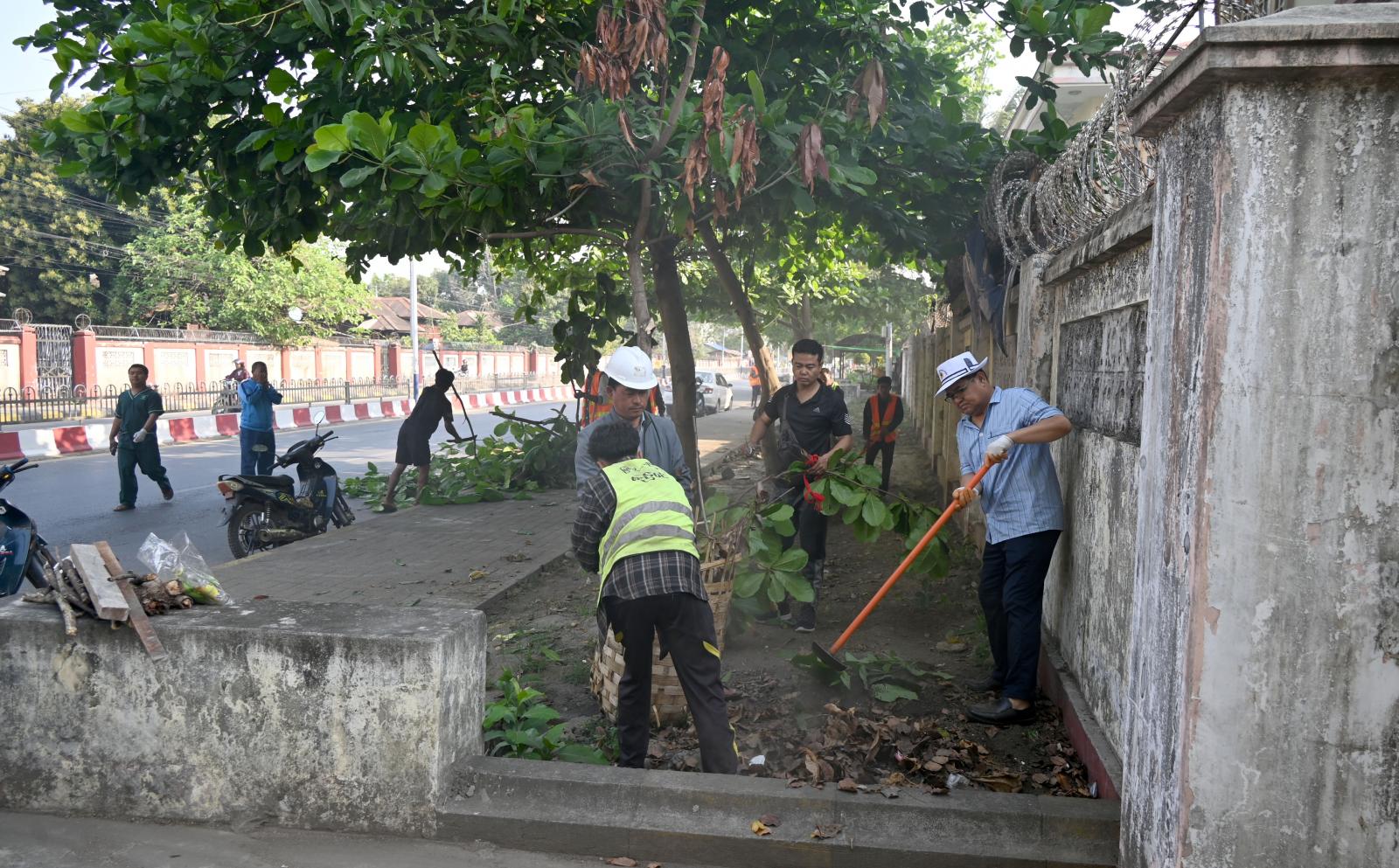 ထို့အတူ ပြည်နယ်ဝန်ကြီးချုပ်သည် နံနက်(၇)နာရီခွဲက မြစ်ကြီးနားမြို့ သန့်ရှင်းသာယာလှပ ရေးအတွက် စုပေါင်းသန့်ရှင်းရေးလုပ်ငန်းကို သခင်နက်ဖေလမ်းတစ်လျှောက် ဆမားလမ်းဆုံနေရာမှ စီတာပူတံတားအထိ စည်ပင်သာယာရေးအဖွဲ့ အရာထမ်း/ အမှုထမ်းများ၊ Kachin State Clean & Green Team အဖွဲ့ဝင်များနှင့်အတူ လမ်းဘေးဝဲ/ ယာများရှိ အမှိုက်များကောက်ယူခြင်း၊ သစ်ပင်ခြုံနွယ်များ ခုတ်ထွင်ရှင်းလင်းခြင်း၊ အပင်ကြီးများ အလင်းဖွင့်ခြင်း လုပ်ငန်းများကို စုပေါင်းဆောင်ရွက်ခဲ့ကြသည်။