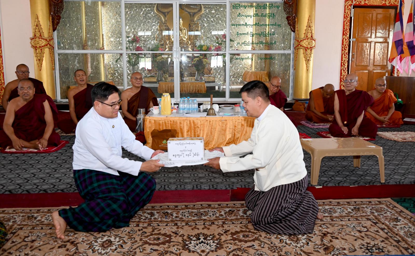 ထို့အတူ မွန်းလွဲပိုင်းက မြစ်ကြီးနားမြို့ သာသနာ့ဗိမ္မာန်တော်ကြီး၌ စာဖြေဌာနဖွင့်လှစ်၍ သြဝါဒါစရိယဆရာတော်ကြီးများ၏ ကြီးကြပ်မှုဖြင့် ၂၀၂၄ ခုနှစ်၊ အစိုးရဓမ္မာစရိယစာမေးပွဲနှင့် ပါဠိပထမပြန်စာမေးပွဲများကို ကျင်းပပြုလုပ်လျက်ရှိရာ ပြည်နယ်ဝန်ကြီးချုပ်သည် ပြည်နယ်ဝန်ကြီး များ၊ ဌာနဆိုင်ရာဆိုင်ရာ တာဝန်ရှိသူများနှင့်အတူ သွားရောက်ခဲ့ကြပြီး ကြီးကြပ်ရေးအဖွဲ့ဝင် သြဝါဒါ စရိယဆရာတော်ကြီးများအား ဖူးမျှော်ကြည်ညိုကာ စာမေးပွဲဆိုင်ရာများကို မေးမြန်းလျှောက်ထားခဲ့ကြကာ ပြည်နယ်ဝန်ကြီးချုပ်က အလှူငွေကျပ် (၁၃၆)သိန်းနှင့် ရေသန့်၊ အချိုရည်များကို ဆက်ကပ်လှူဒါန်းခဲ့သည်။