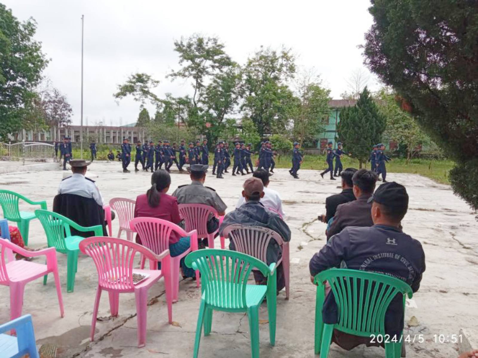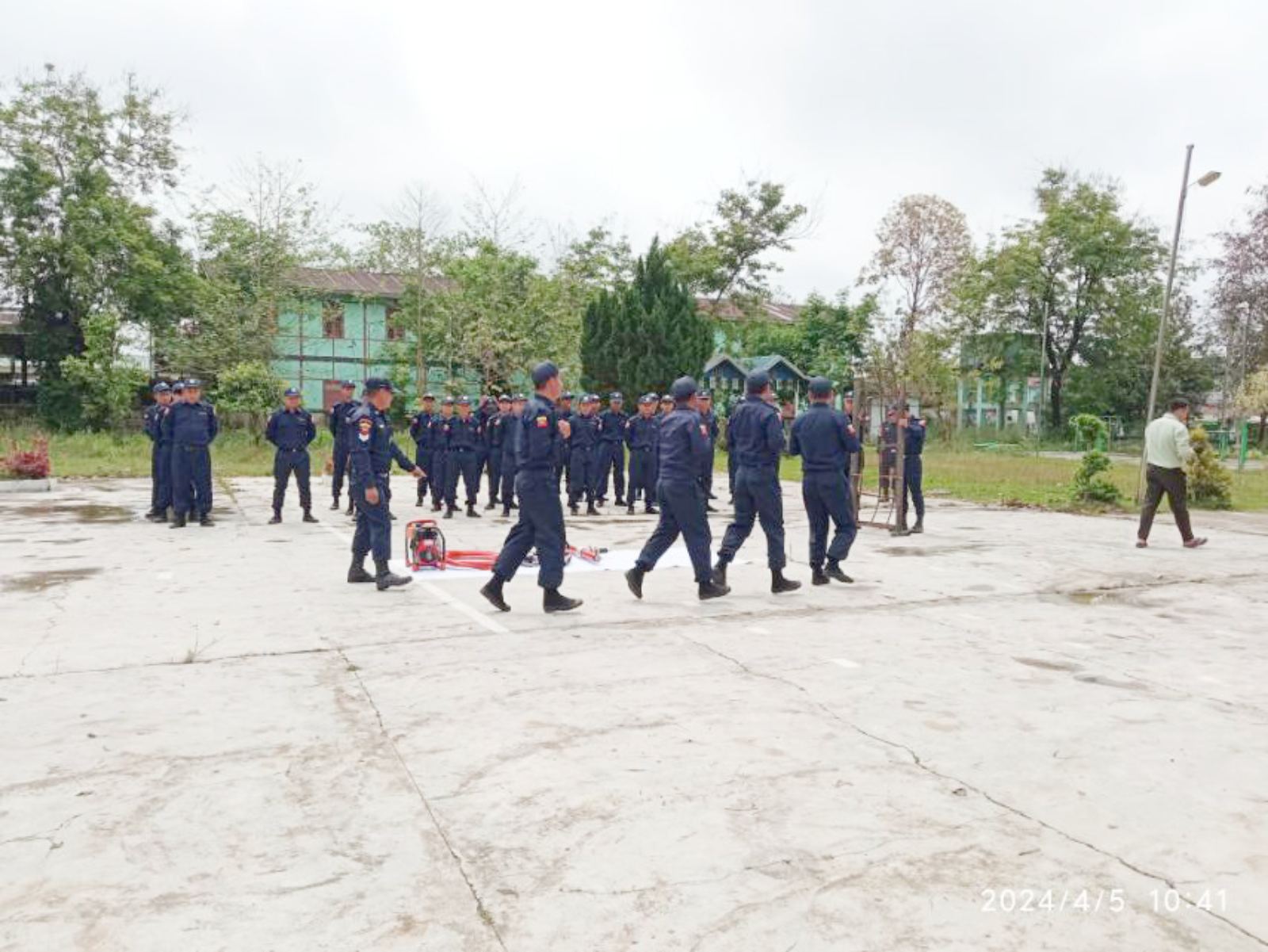 အဆိုပါ သင်တန်းဆင်းပွဲတွင် မီးသတ်စက်ကလေးလေ့ကျင့်မှုအား သရုပ်ပြသခြင်း၊ ရှာဖွေကယ်ဆယ်ရေးသုံးပစ္စည်းများ လေ့ကျင့်မှုသရုပ်ပြသခြင်း၊ ကြိုးချည်နည်းလေ့ကျင့်မှုပြသခြင်းနှင့် စစ်ရေးပြလေ့ကျင့်မှုများအား လေ့ကျင့်ပြသခဲ့ကြောင်း သိရသည်။