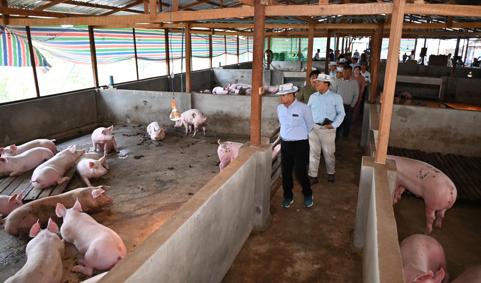 ထိုမှတစ်ဆင့် ပြည်နယ်ဝန်ကြီးချုပ်နှင့် အဖွဲ့ဝင်များသည် ဝိုင်းမော်မြို့နယ် နောင်ချိန်းကျေးရွာသို့ သွားရောက်ပြီး ကျေးရွာအတွင်းရှိ ကချင်ပြည်နယ်ငါးလုပ်ငန်းအဖွဲ့ချုပ်ဥက္ကဋ္ဌ ဦးအင်ဂန်လတောင်၏ ခြံဝင်းအတွင်း DYL အသားတိုးဝက်ကောင်ရေ ၄၀၀ ကျော်ကို ခြံများဖြင့် စနစ်တကျ မွေးမြူထားရှိမှုကိုလည်းကောင်း၊ ခြံဝင်းအတွင်း ဧက (၇၀)တွင် ငါးကြင်း၊ ထိုင်းငါးခုံးမ၊ ရွှေဝါငါးကြင်းနှင့် တီလားဗီးယား စသည့် ငါးမျိုးများကို စနစ်တကျ မွေးမြူဆောင်ရွက်ထားရှိမှု အခြေအနေများကိုလည်းကောင်း၊ တစ်သျှူးငှက်ပျောစိုက်ခင်းများနှင့် နှစ်ရှည်ပင်များ စိုက်ပျိုးထားရှိမှု အခြေအနေများကိုလည်းကောင်း လှည့်လည်ကြည့်ရှုစစ်ဆေးခဲ့ကြပြီး လိုအပ်ချက်များ၊ ဈေးကွက်ရရှိမှု အခြေအနေများကို မေးမြန်းဆွေးနွေးကာ ပြည်နယ်ဝန်ကြီးချုပ်က ဝက်ခြံများအတွက် ခြံဖျန်းပိုးသတ်ဆေးနှင့် မွေးမြူရေးအထောက်အကူပြုဆေးဝါးများကို ထောက်ပံ့ပေးအပ်ခဲ့သည်။