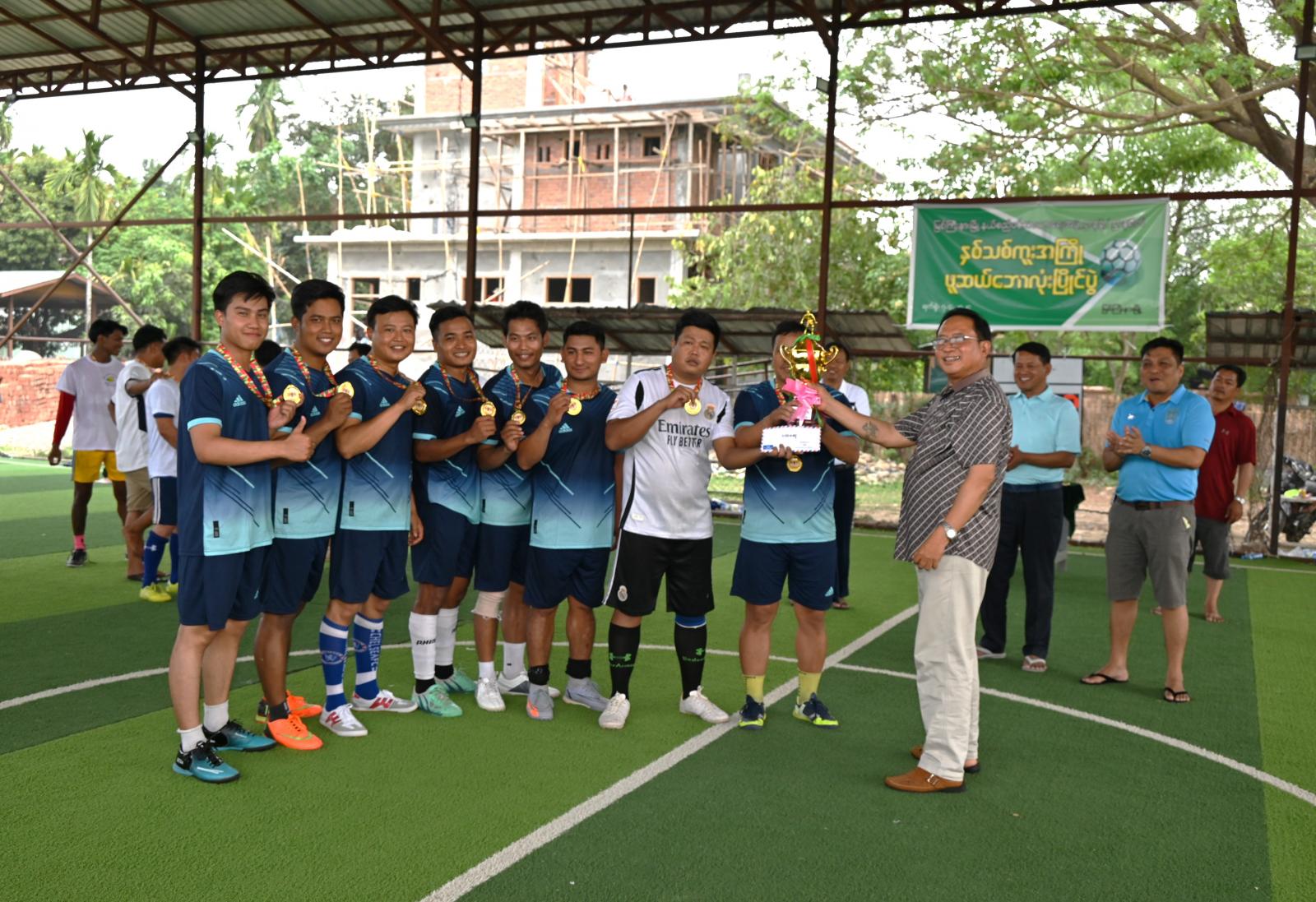 ယင်းနောက် ဆုချီးမြှင့်ပွဲ အခမ်းအနားကို ဆက်လက်ကျင်းပရာ ပြည်နယ်ဝန်ကြီးက ဝန်ထမ်းများ စည်းစည်းလုံးလုံး၊ ညီညီညွတ်ညွတ်ဖြင့် ပေးအပ်လာသော လုပ်ငန်းတာဝန်များ ကျန်းမာပျော်ရွှင်စွာ၊ ကျေပွန်စွာထမ်းဆောင်နိုင်ရေး ယခုလို ဘောလုံးပြိုင်ပွဲများ၊ ထောက်ပံ့ပေးအပ်မှုများကိုလည်း စဉ်ဆက်မပြတ် ပံ့ပိုးကူညီဖြည့်ဆည်းဆောင်ရွက် ပေးသွားမည်ဖြစ်ပါကြောင်း တိုက်တွန်းအားပေး ပြောကြားပြီး မြို့နယ်အမှုဆောင်အရာရှိ ဦးလှမိုးနှင့် အရာထမ်းများက ဒိုင်အဖွဲ့များနှင့် နှစ်သိမ့်ဆုရ အသင်းများ၊ ဒုတိယနှင့် တတိယဆုရအသင်းများအတွက် ထောက်ပံ့ချီးမြှင့်ငွေများ၊ လည်ဆွဲဆုတံဆိပ်များကို လည်းကောင်း၊ ပြည်နယ်ဝန်ကြီးက ပထမဆုရအသင်းအတွက် တစ်ဦးချင်းလည်ဆွဲဆုတံဆိပ် များ၊ ဂုဏ်ပြုချီးမြှင့်ငွေနှင့် ဆုဖလားတို့ကို ပေးအပ်ချီးမြှင့်ခဲ့ကြကြောင်း သိရသည်။