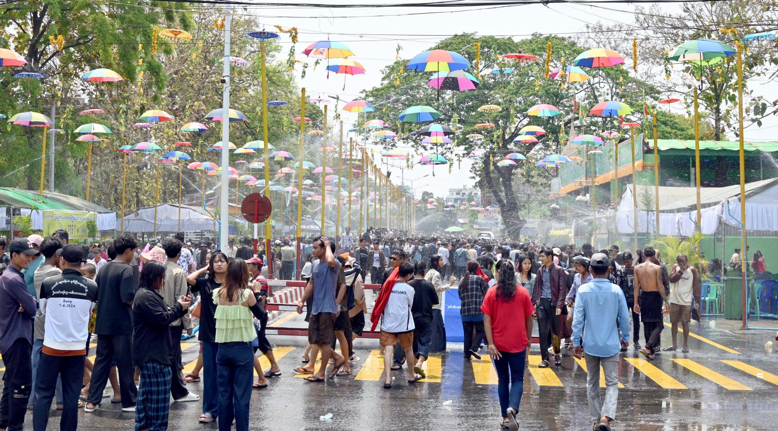 ထိုမှတစ်ဆင့် ပြည်နယ်ဝန်ကြီးချုပ်နှင့် ဇနီး၊ ပြည်နယ်အစိုးရအဖွဲ့ဝင်များသည် ဗဟိုမဏ္ဍပ်သို့ သွားရောက်ပြီး ဗဟိုမဏ္ဍပ်နှင့် လမ်းလျှောက်သင်္ကြန်တို့တွင် ရေကစားသူများ၊ လာရောက်လည်ပတ်သူများ၊ သင်္ကြန်ချစ်များဖြင့် စည်ကားသိုက်မြိုက်မှုကို ကြည့်ရှုအားပေးခဲ့ကြကြောင်း သိရသည်။