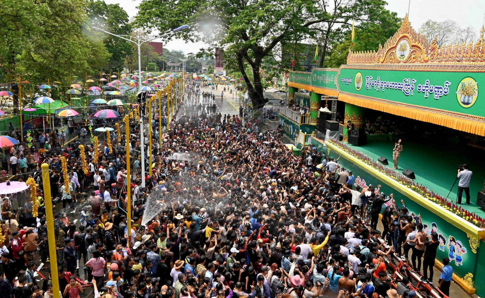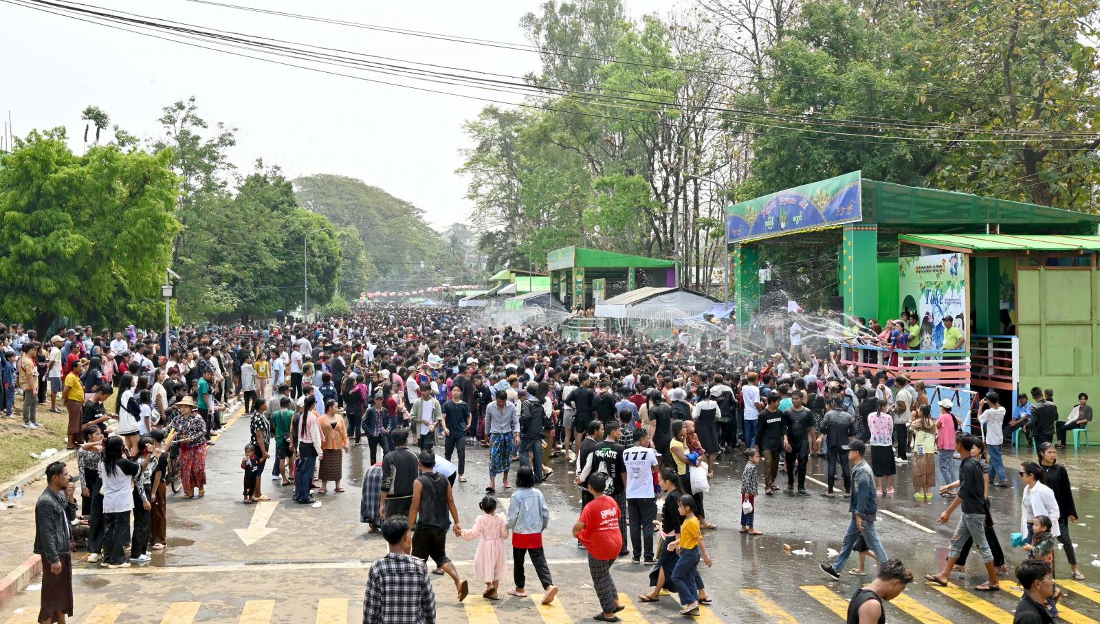 ထို့နောက် ပြည်နယ်ဝန်ကြီးချုပ်နှင့် ဇနီး၊ တာဝန်ရှိသူများသည် ဆမားလမ်းမပေါ်ရှိ ဌာနဆိုင်ရာများ နှင့် ဒေသခံစီးပွားရေးလုပ်ငန်းရှင်များ၏ ငွေပျော်အိုင်မဏ္ဍပ်၊ ပိတောက်ရွှေဝါမဏ္ဍပ်၊ ကမ္ဘာကျော် ရေကစားမဏ္ဍပ်၊ နှစ်သစ်ကူးအတာသင်္ကြန်ရေကစားမဏ္ဍပ်၊ ပိတောက်ရွှေဝါရေကစားမဏ္ဍပ် စသည့် အတာရေသဘင်မဏ္ဍပ် (၅)ခုတို့တွင် ယိမ်းအကအလှများ၊ ခေတ်ပေါ်တေးသီချင်း သီဆိုဖျော်ဖြေမှု များကို လာရောက်လည်ပတ် ရေကစားသူပြည်သူများနှင့်အတူ ပျော်ရွှင်စွာ ပါဝင်ဆင်နွှဲခဲ့ကြသည်။
