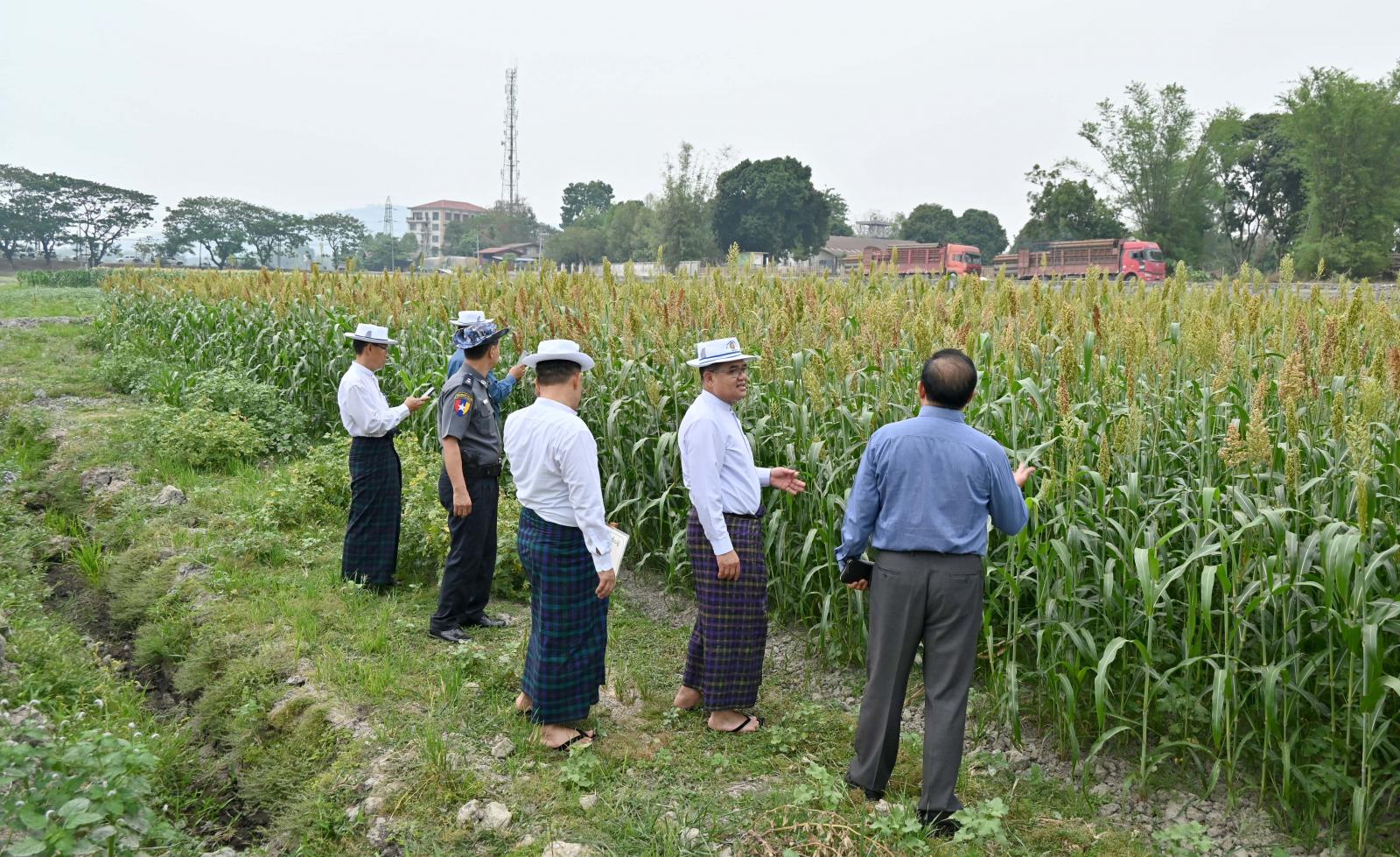 ထိုမှတစ်ဆင့် ပြည်နယ်ဝန်ကြီးချုပ်နှင့် အဖွဲ့ဝင်များသည် မြစ်ကြီးနားမြို့သို့ ပြန်လည်ရောက်ရှိ ပြီး ဗလမင်းထင်စံပြစိုက်ကွင်းအတွင်း လယ်သီးထပ်ဆောင်းသီးနှံအဖြစ် ပဲပုပ်၊ မြေထောက်ပဲ၊ ဖူးစားပြောင်း၊နှံစားပြောင်း၊ နေကြာသီးညှပ် စိုက်ပျိုးထားရှိမှုအခြေအနေများ၊ စိုက်ပျိုးရေးဦးစီးဌာနက တောင်သူအသိပညာပေး ( Strip Cropping )သီးနှံမျိုးစုံအကန့်လိုက်စိုက်ပျိုးထားသည့် သီးနှံများ အောင်မြင်ဖြစ်ထွန်းနေမှုကို လှည့်လည်ကြည့်ရှုစစ်ဆေးပြီး စံပြစိုက်ခင်းအတွင်း စိတ်အေးချမ်းစွာ လာရောက် အနားယူလည်ပတ်ကြသည့် ပြည်သူများအား ရင်းရင်းနှီးနှီး လိုက်လံနှုတ်ဆက်ခဲ့ကြကြောင်း သိရသည်။