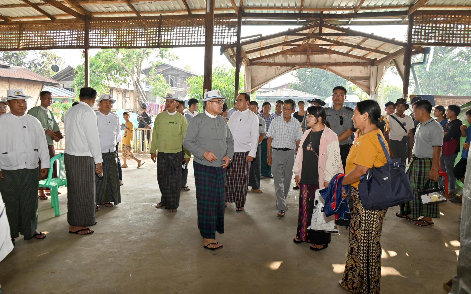 ထိုမှတစ်ဆင့် အမှတ်(၃)ရပ်ကွက် ယူကလစ်ကုန်းရှိ လီဆူနှစ်ခြင်းခရစ်ယာန်အသင်းတော်ဝင်းအတွင်း ဝူယန်ကျေးရွာအုပ်စုမှ နေအိမ်များ မီးလောင်ပျက်စီး၍ ယာယီခိုလှုံနိုင်ရေး ဝါးနေအိမ်တန်းလျားများ တည်ဆောက်နေမှုကို လှည့်လည်ကြည့်ရှုစစ်ဆေးခဲ့ကြပြီး နေအိမ်တန်းလျားများ တည်ဆောက်ရာ တွင် လိုအပ်သည့် အမိုး၊ အကာ၊ ကြမ်းခင်းများ အမြန်ဆုံးဆောင်ရွက်ပြီးစီးရေး၊ ရေအိမ်သာများ ထပ်တိုးတည်ဆောက်ပေးနိုင်ရေး၊ ရေတွင်းများ တူးဖော်ပေးနိုင်ရေးနှင့် လျှပ်စစ်မီးသွယ်တန်းပေးနိုင် ရေးတို့အတွက် ဌာနဆိုင်ရာတာဝန်ရှိသူများနှင့် ပေါင်းစပ်ညှိနှိုင်း၍ ဖြည့်ဆည်းဆောင်ရွက်ပေးခဲ့ကြောင်း သိရသည်။