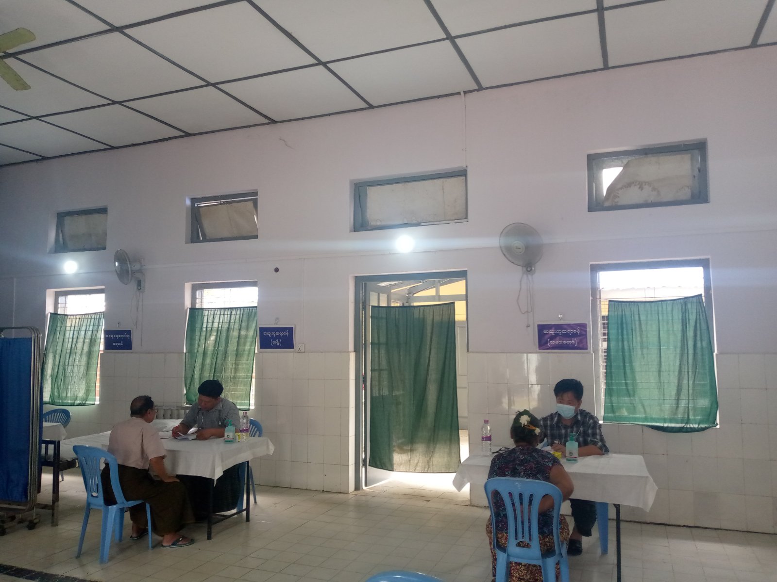 မြန်မာ့စီးပွားရေးဘဏ်ရှေ့၌ ဌာနဆိုင်ရာအသီးသီးမှ နိုင်ငံ့တာဝန်များကို ကျေပွန်စွာထမ်းဆောင်၍ ပင်စင်အမျိုးမျိုးဖြင့် ပင်စင်ထုတ်ယူရန်လာရောက်ကြသည့် နိုင်ငံ့ဝန်ထမ်းဟောင်းများ ပင်စင်ထုတ်ယူရန် စောင့်ဆိုင်းနေကြသည့် အငြိမ်းစားနိုင်ငံ့ဝန်ထမ်းများကို ဗန်းမော်ခရိုင် ပြည်သူ့ကျန်းမာရေးဦးစီးဌာန ဆေးရုံအုပ်ကြီးဒေါက်တာအောင်ကျော်စိုး အနီးကပ်ကြီးကြပ်မှုဖြင့် ဌာနဆိုင်ရာမှ တာဝန်ရှိသူများနှင့် လူမှုရေးအသင်းအဖွဲ့တို့က အာဟာရဒါနများကျွေးမွေးခဲ့ကြပြီး ကြက်ခြေနီအသင်းအဖွဲ့နှင့် ကျန်းမာရေးဝန်ထမ်းများကပင်စင် လာရောက်ထုတ်ယူကြသည့် အဘိုးအဘွားများအား အပူချိန်တိုင်းတာခြင်း၊ သွေးပေါင်ချိန်တိုင်းခြင်း၊ သွေးတိုး၊ ဆီးချို၊ သွေးချိုတိုင်းတာပေးခြင်း လိုအပ်သည့် ကျန်းမာရေးစောင့်ရှောက်မှုများ ဆောင်ရွက်ပေးခဲ့ပြီး သွေးတိုး၊ ဆီးချိုကျဆေးစသည့် လိုအပ်သည့်ဆေးဝါးများအား အခမဲ့ထောက်ပံ့ပေးအပ်ခဲ့ကြောင်း သိရသည်။