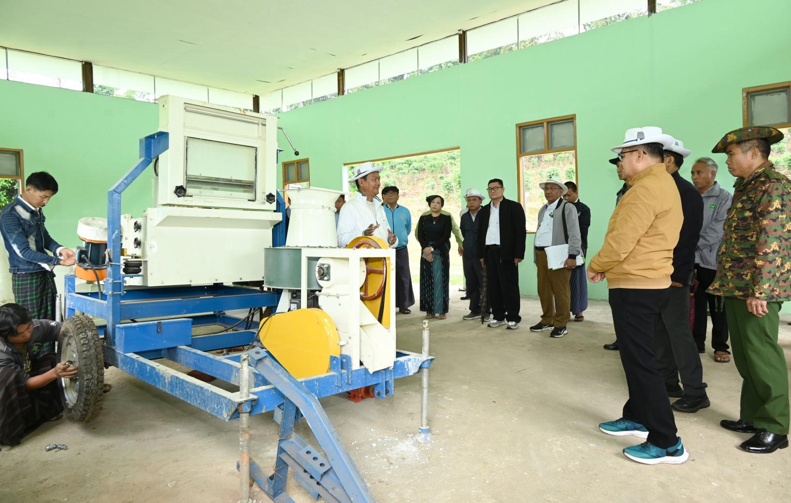 ထို့နောက် ပြည်နယ်ဝန်ကြီးချုပ်နှင့် အဖွဲ့ဝင်များသည် ကောင်ကထောင်ရပ်ကွက်အတွင်း စိုက်ပျိုးရေး ဦးစီးဌာနပိုင် မတ်ပန်ခြံအတွင်း ပူတာအိုဒေသအတွက် မျိုးစေ့သန့်စင်စက်ရုံ အဆောက် အဦသစ် တည်ဆောက်ပြီးစီးမှု အခြေအနေများနှင့် စက်ရုံအတွင်း မျိုးစေ့သန့်စင်စက်တပ်ဆင်ဆောင် ရွက်နေမှု များကိုလည်းကောင်း၊ မတ်ပန်ကွင်းအတွင်းရှိ လယ်မြေများတွင် မိုးစပါးစိုက်ပျိုးချိန်အမီ မြေသြဇာ မြေဆီမြေနှစ်ပြည့်ဝစေရေးအတွက် သစ်စိမ်းမြေသြဇာ (ပိုက်ဆံလျှော်) မျိုးစေ့များအား တောင်သူ အသိပညာပေးကြဲပက်ပွဲအခမ်းအနားသို့ တောင်သူများနှင့်အတူ တက်ရောက်ခဲ့ကြပြီး စိုက်ပျိုးရေး ဦးစီးဌာန ဝန်ထမ်းများ၏ ကြဲပက်ဆောင်ရွက်မှုကို ကြည့်ရှုအားပေးကာ ဒေသခံတောင်သူများအား ရင်းရင်းနှီးနှီးလိုက်လံနှုတ်ဆက်ခဲ့ကြသည်။
