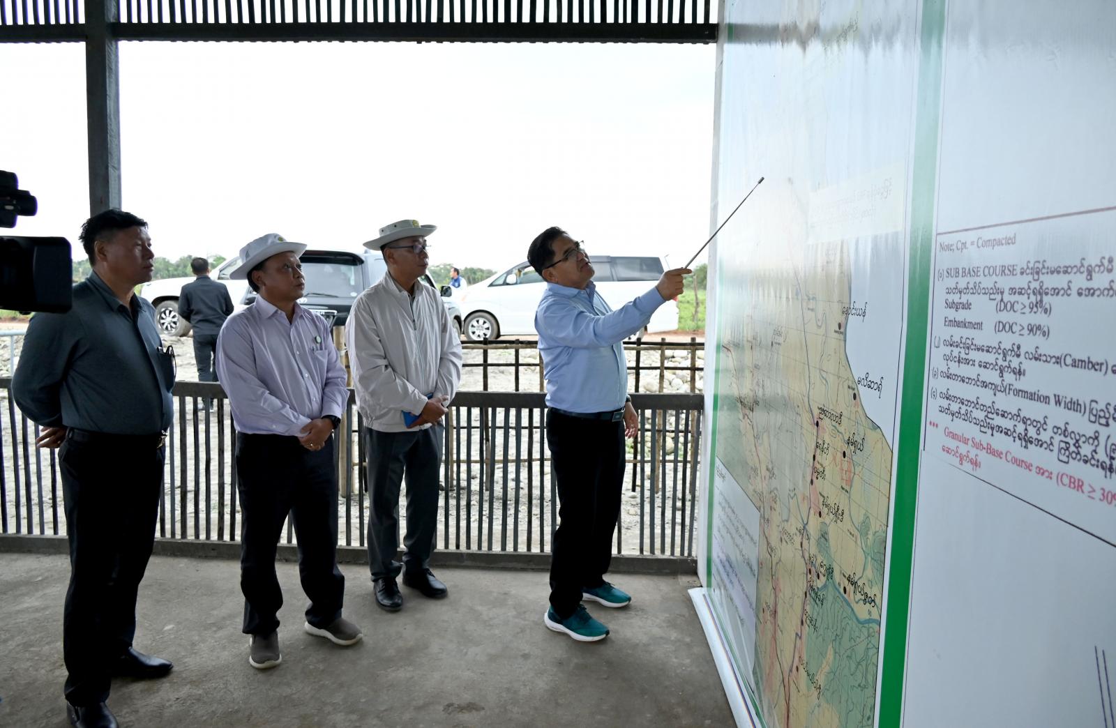 ထို့နောက် မွန်းလွဲပိုင်းတွင် ပြည်နယ်ဝန်ကြီးချုပ်နှင့် အဖွဲ့ဝင်များသည် ပူတာအိုမြို့နယ်အတွင်း ကျေးရွာပေါင်း (၂၈)ရွာအတွင်း လယ်ယာထုတ်ကုန်ပစ္စည်းများ သယ်ယူတင်ပို့နိုင်ရေးအတွက် အဓိက လမ်းတစ်ခုဖြစ်သည့် ပူတာအို-လယ်မယ်ဝါဂျီ-နမ်ရှယ်ကော့-မန်စေခွန်-မန်စေလမ်း (ပူတာအိုလွင်ပြင် ပတ်လမ်း) ၂၅ မိုင်လမ်း ကွန်ကရစ်လမ်းခင်းခြင်း လုပ်ငန်းဆောင်ရွက်ပြီးစီးမှု အခြေအနေများကို မော်တော်ယာဉ်များဖြင့် လှည့်လည်ကြည့်ရှုစစ်ဆေးခဲ့ကြပြီး လမ်းလုပ်ငန်းစီမံကိန်းရှင်းလင်းဆောင်၌ လမ်းဆောင်ရွက်ပြီးစီးမှု အခြေအနေများ၊ တံတားဆောင်ရွက်ပြီးစီးမှု အခြေအနေများ ရှင်းလင်းတင်ပြ မှုများအပေါ် လိုအပ်သည်များကို ညှိနှိုင်းပေါင်းစပ်ဆောင်ရွက်ပေးခဲ့ကာ အဆိုပါကျေးရွာအုပ်စုများ အတွင်း လယ်မြေများတွင် မြေဆီမြေနှစ်ပါးလွှာမှုကို ကြည့်ရှုစစ်ဆေးခဲ့ကာ မြေဆီလွှာနှင့် ကိုက်ညီပြီး ဖြစ်ထွန်းအောင်မြင်သည့် သီးနှံများစမ်းသပ်စိုက်ပျိုးနိုင်ရေး ဆောင်ရွက်ပေးခဲ့သည်။