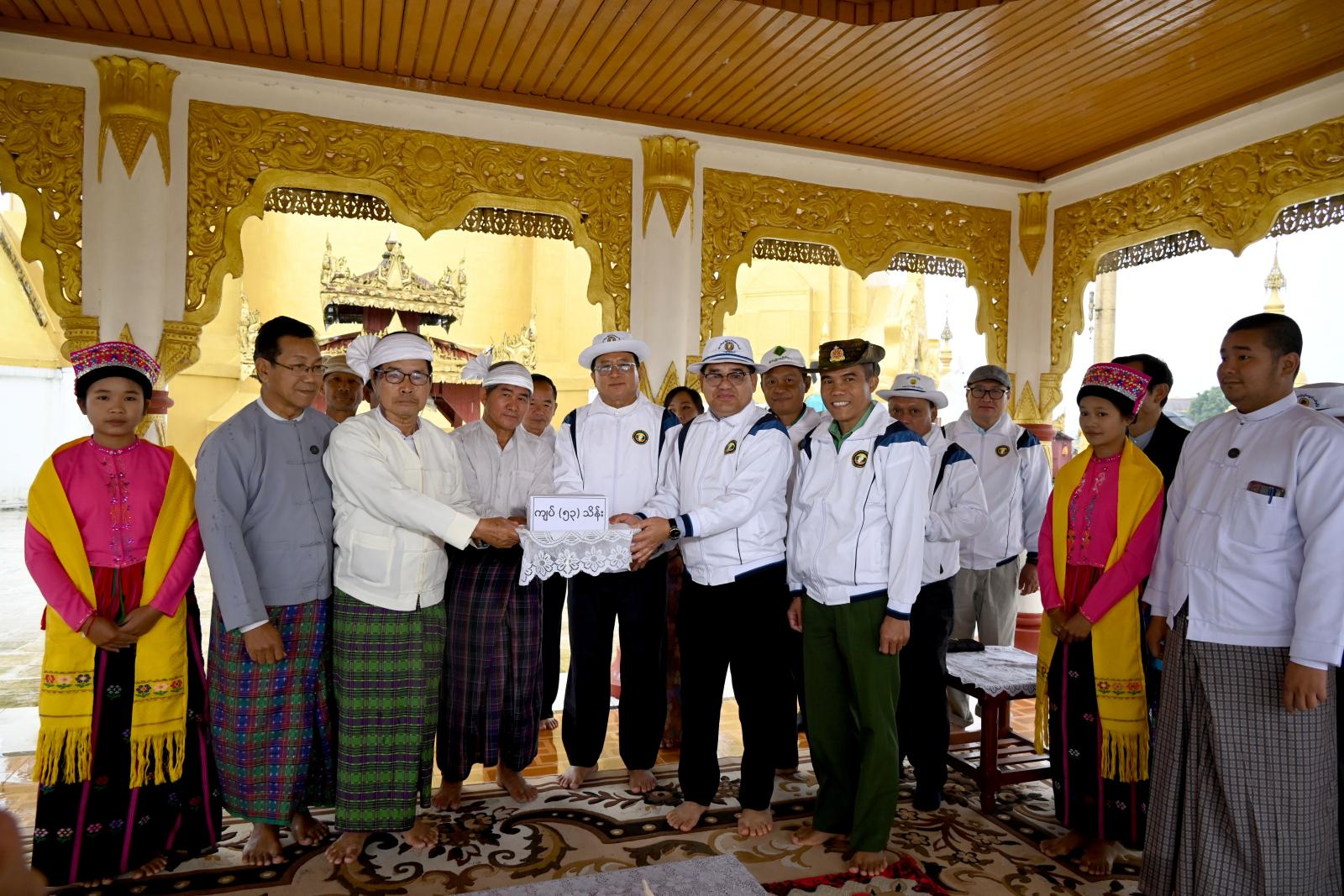 ထိုသို့ ကွင်းဆင်းဆောင်ရွက်ရာတွင် ပြည်နယ်ဝန်ကြီးချုပ်သည် ပြည်နယ်သယံဇာတရေးရာဝန်ကြီး၊ နိုင်ငံ့စီးပွားမြှင့်ရေးရန်ပုံငွေဖြင့် စိုက်ပျိုးမွေးမြူရေးဆောင်ရွက်သော ပြည်နယ်အဆင့်ကျေးရွာ စီမံကိန်းကော်မတီအဖွဲ့ဝင်များ၊ ပူတာအိုအခြေချခေတ္တ စစ်ဗျူဟာမှူး ဗိုလ်မှူးကြီးကျော်ကျော်ဦး၊ ခရိုင်၊ မြို့နယ်အဆင့်ဌာနဆိုင်ရာ တာဝန်ရှိသူများနှင့်အတူ မချမ်းဘောမြို့နယ်အတွင်းရှိ ရှေးဟောင်းသမိုင်းဝင် ကောင်းမှုလုံစေတီတော်သို့ သွားရောက်ပြီး စေတီတော်အား ဖူးမြှော်ကြည်ညိုကာ စေတီတော်ကြီး လုံးတော်ပြည့်ရွှေသင်္ကန်း ကပ်လှူပူဇော်နိုင်ရေးအတွက် အလှူငွေကျပ် ၅၃ သိန်းကို လှူဒါန်းပူဇော်ခဲ့ကြသည်။