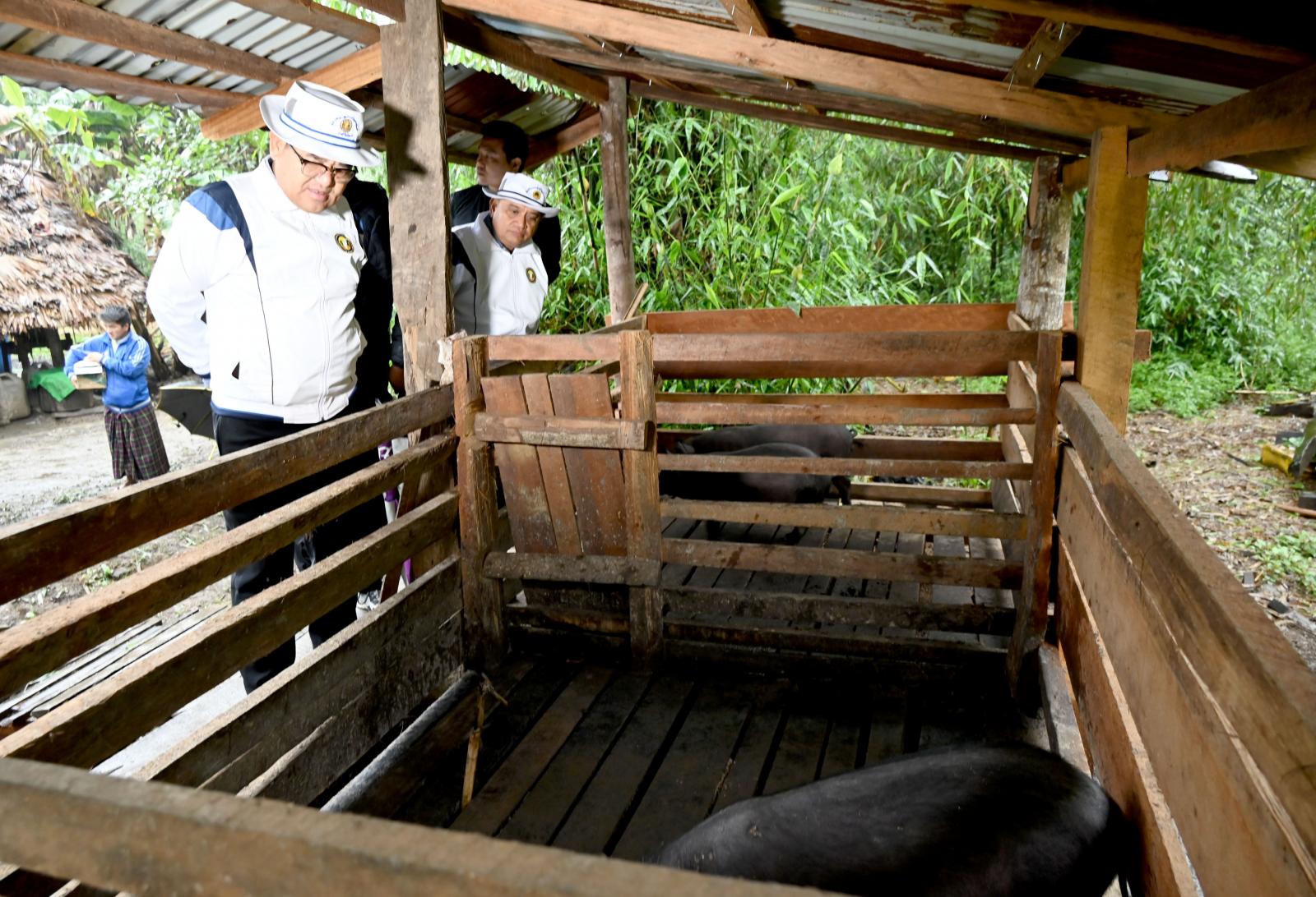ယင်းနောက် ဇီးအွန်ကျေးရွာအုပ်စုအတွင်းရှိ ကျေးလက်ဒေသဖွံ့ဖြိုးတိုးတက်ရေးဦးစီးဌာနက Smart Village ကျေးရွာစီမံကိန်းဖြင့် ဖွံ့ဖြိုးတိုးတက်ရေးဆောင်ရွက်လျက်ရှိသည့် မူလာအွန်ကျေးရွာ အတွင်း ကျေးလက်စီးပွားမြှင့်မားရေးနှင့် ရန်ပုံငွေထူထောင်ခြင်းလုပ်ငန်း(RBF)ဖြင့် မတည်ထူထောင် ပေးထားသည့် ဝက်မွေးမြူရေးလုပ်ငန်းအခြေအနေနှင့် ဈေးကွက်ရောင်းချနိုင်မှု အခြေအနေများအား လှည့်လည်ကြည့်ရှုစစ်ဆေးခဲ့ကြပြီး မွေးမြူရေးအထောက်အကူပြုဆေးဝါးပစ္စည်းများနှင့် ဒေသခံများ အတွက် ထောက်ပံ့ငွေများကို ပေးအပ်ခဲ့ကြသည်။ ထို့နောက် အဆိုပါကျေးရွာအတွင်း မြစိမ်းရောင် စီမံကိန်း(၃)နှစ်ပြည့် အတိုးရငွေကျပ် (၇၉)သိန်းဖြင့် ဆောင်ရွက်ပြီးစီးခဲ့သည့် ဆိုလာရေသန့်စက်ရုံ တည်ဆောက်လည်ပတ်နေမှု အခြေအနေကို ကြည့်ရှုစစ်ဆေးပြီး ခရစ်ယာန်အသင်းတော် ကလေးသူ ငယ်ဖွံ့ဖြိုးရေးကျောင်း၌ ကလေးငယ်များအတွက် အာဟာရဖြည့်စွက်စာ ဝယ်ယူကျွေးမွေးနိုင်ရေး ထောက်ပံ့ငွေများကို ပေးအပ်ခဲ့သည်။