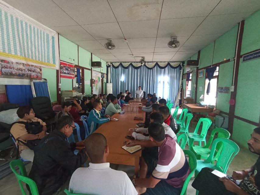 ရှေးဦးစွာ မြို့နယ်စီမံအုပ်ချုပ်ရေးအဖွဲ့အဖွဲ့ဝင် ဦကြည်ထွန်းက အဖွင့်အမှာစကား ပြောကြားပြီး ကျန်းမာရေးနှင့် ကုသရေးဦးစီးဌာနမှူး ဒေါက်တာသိန်းမြို့က မေလ ၄ ရက်နေ့မှ ၆ ရက်နေ့ထိနှင့် မေလ ၁၁ ရက်များတွင် မြို့ပေါ် (၅) ရပ်ကွက်၊ ကျေးရွာများ၊ တိုက်ပွဲရှောင်စခန်းများတွင် လည်းကောင်း၊ မေလ ၂၃ ရက်မှ ၂၅ ရက်နေ့ထိ (၃) ရက်ဆက်တိုက် အခြေခံပညာကျောင်းများ၌ လည်းကောင်း Abate ဆေးခတ်ခြင်းများ ဆောင်ရွက်သွားမည်ဖြစ်ကြောင်း ပြောကြားခဲ့သည်။