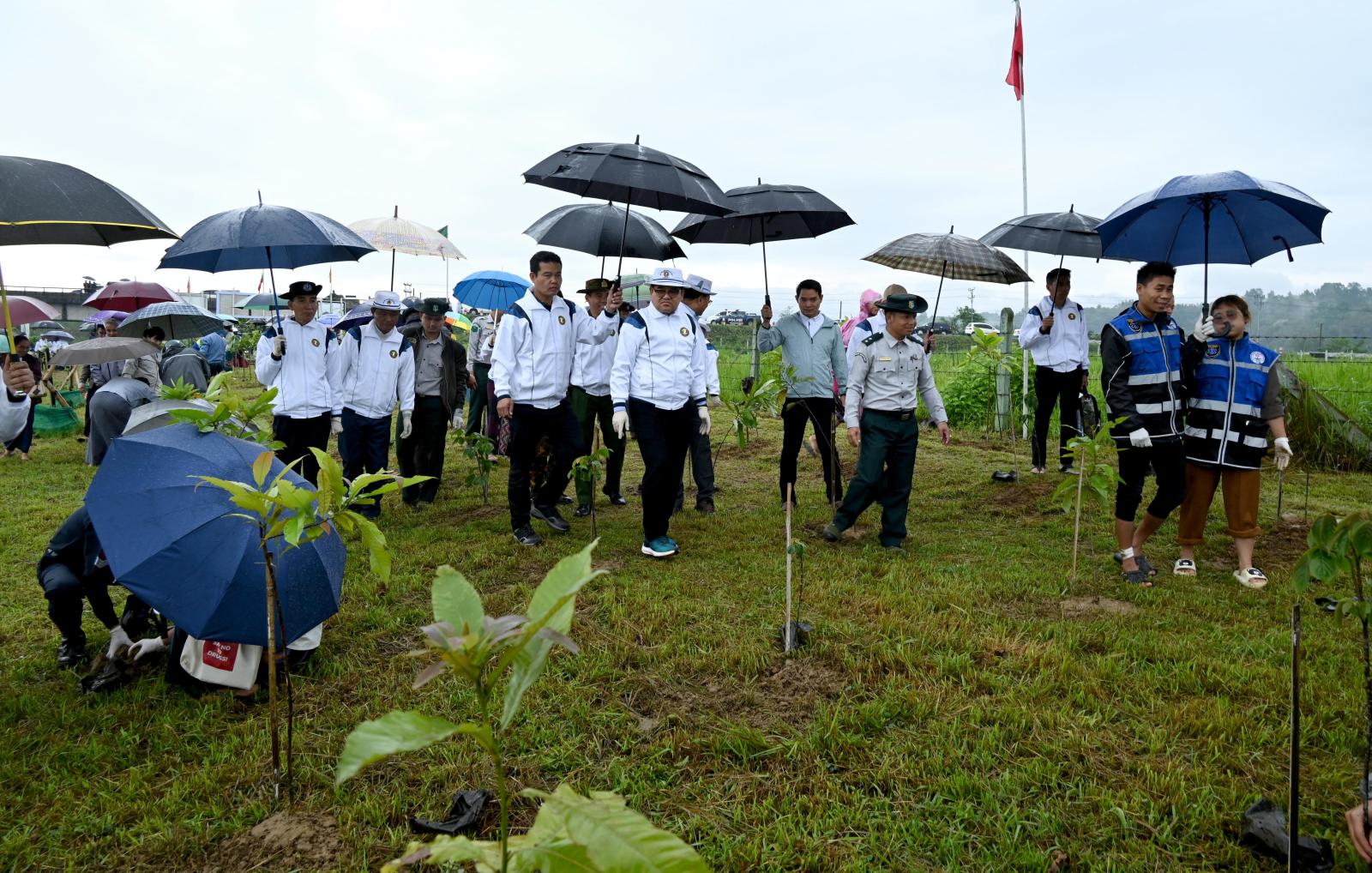 ထို့အတူ ပြည်နယ်ဝန်ကြီးချုပ်သည် မေ ၁ ရက် နံနက်ပိုင်းတွင် လုံးစွတ်ရပ်ကွက်၊ လုံးစွတ် တံတားအနီး နမ်ထွမ်ချောင်းကမ်းဘေးတွင် ဝဲ/ယာတွင် ၂၀၂၄ ခုနှစ်၊ မိုးရာသီအကြို စုပေါင်းသစ်ပင် စိုက်ပျိုးပွဲတော်သို့ တက်ရောက်ပြီး ခရိုင်/ မြို့နယ်အဆင့်ဌာနဆိုင်ရာများ၊ လူမှုရေးအသင်းအဖွဲ့များ၊ တိုင်းရင်းသားစာပေနှင့် ယဉ်ကျေးမှုအဖွဲ့များအတွက် စိုက်ပျိုးမည့် ပျိုးပင်များကို ဖြန့်ဝေပေးအပ်ခဲ့ကာ ဒေသနှင့် ကိုက်ညီဖြစ်ထွန်းသည့် ရေပိတုန်း၊ သစ်အယ်၊ ဗာတီဗာမြက်၊ တောင်ဇလပ်စသည့် သစ်မျိုး ပျိုးပင်ပေါင်း (၄၀၀)ကို အတူတကွ စုပေါင်းစိုက်ပျိုးခဲ့ကြပြီး ပြည်နယ်ဝန်ကြီးချုပ်က တက်ရောက် လာသူများအား ရင်းရင်းနှီးနှီးလိုက်လံနှုတ်ဆက်အားပေးခဲ့ကြသည်။