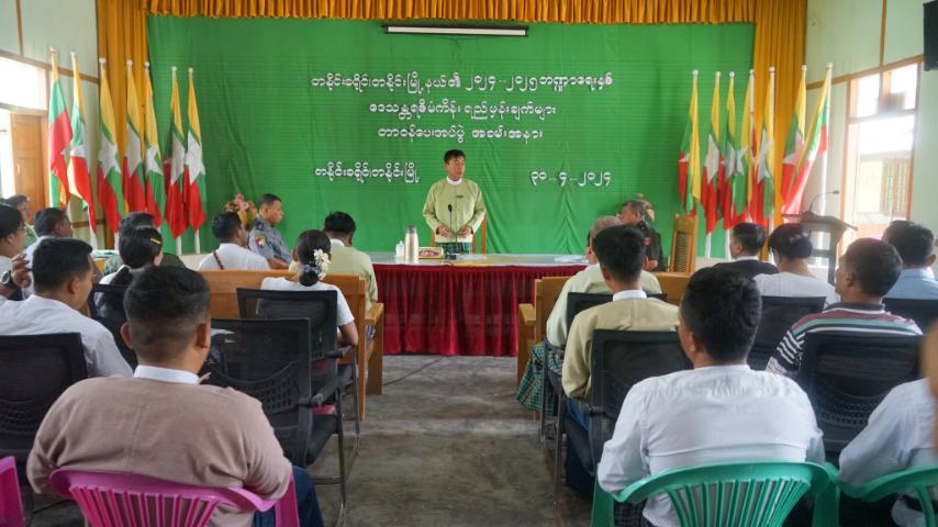 ကချင်ပြည်နယ်၊ တနိုင်းခရိုင်၊ တနိုင်းမြို့နယ်၏ ၂၀၂၄-၂၀၂၅ ဘဏ္ဍာနှစ် ဒေသန္တရစီမံကိန်း ရည်မှန်းချက်များ တာဝန်ပေးအပ်ပွဲအခမ်းအနားကို ဧပြီလ ၃၀ ရက်နေ့ မွန်းတည့် ၁၂ နာရီက တနိုင်းမြို့နယ် အထွေထွေအုပ်ချုပ်ရေးဦးစီးဌာနရုံး အစည်းအဝေးခန်းမ၌ ကျင်းပပြုလုပ်သည်။