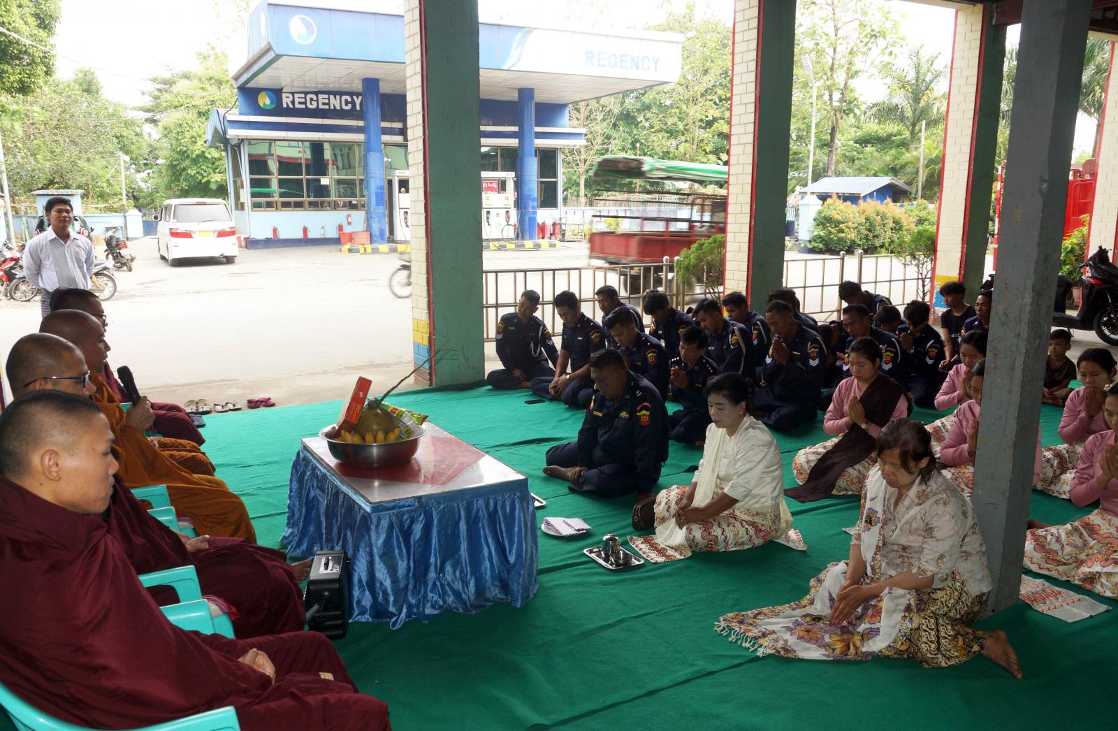 ထိုသို့ ကျင်းပရာတွင် ၂၀၂၄ ခုနှစ်၊ မေလ(၅)ရက်တွင် ကျရောက်မည့် (၇၈)နှစ်မြောက် မြန်မာနိုင်ငံ မီးသတ်တပ်ဖွဲ့နေ့ကို ကြိုဆိုဂုဏ်ပြုသောအားဖြင့် ခရိုင်မီးသတ်ဦးစီးဌာနမှ ခရိုင်ဦးစီးမှူး ဦးကျော်စိုးသန်း ဦးဆောင်သည့် တပ်ဖွဲ့ဝင်းများနှင့်အတူ မိသားစုဝင်များက ထီးလင်းကျောင်းတိုက်မှ ဆရာတော်ကြီးနှင့် သံဃာတော်များအား ပင့်ဖိတ်၍ ဩဝါဒကထာတရားတော်များ နာယူကြည်ညိုကြကာ အလှူငွေများနှင့်အတူ လှူဒါန်းမှုအစုအစုတို့အတွက် ရေစက်သွန်းချ အမျှပေးဝေခဲ့ကြပြီး နေ့ဆွမ်းကို ဆက်ကပ်လှူဒါန်းခဲ့ကြကြောင်း သိရသည်။