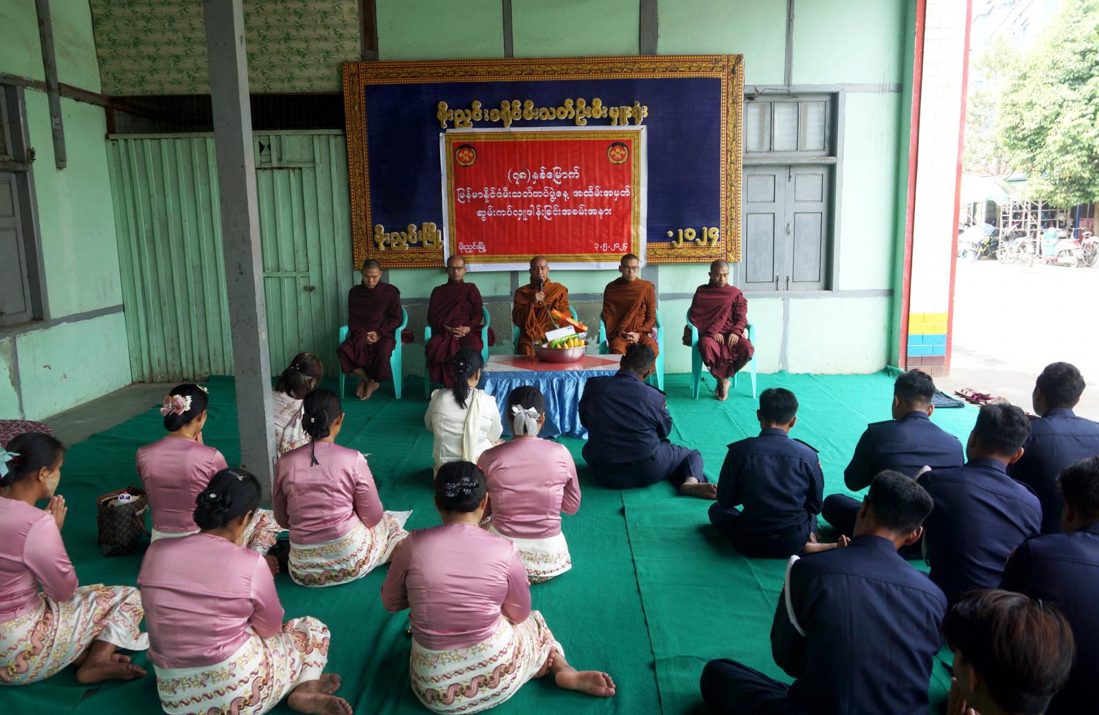 ကချင်ပြည်နယ် မိုးညှင်းခရိုင် မိုးညှင်းမြို့၌(၇၈)နှစ်မြောက် မြန်မာနိုင်ငံမီးသတ်တပ်ဖွဲ့နေ့ကို ကြိုဆိုဂုဏ်ပြုသောအားဖြင့် ဆွမ်းဆက်ကပ်လှူဒါန်းခြင်းကို ယနေ့နံနက်(၁၀)နာရီက ခရိုင်မီးသတ်ဦးစီးဌာနရုံး၌ ကျင်းပသည်။