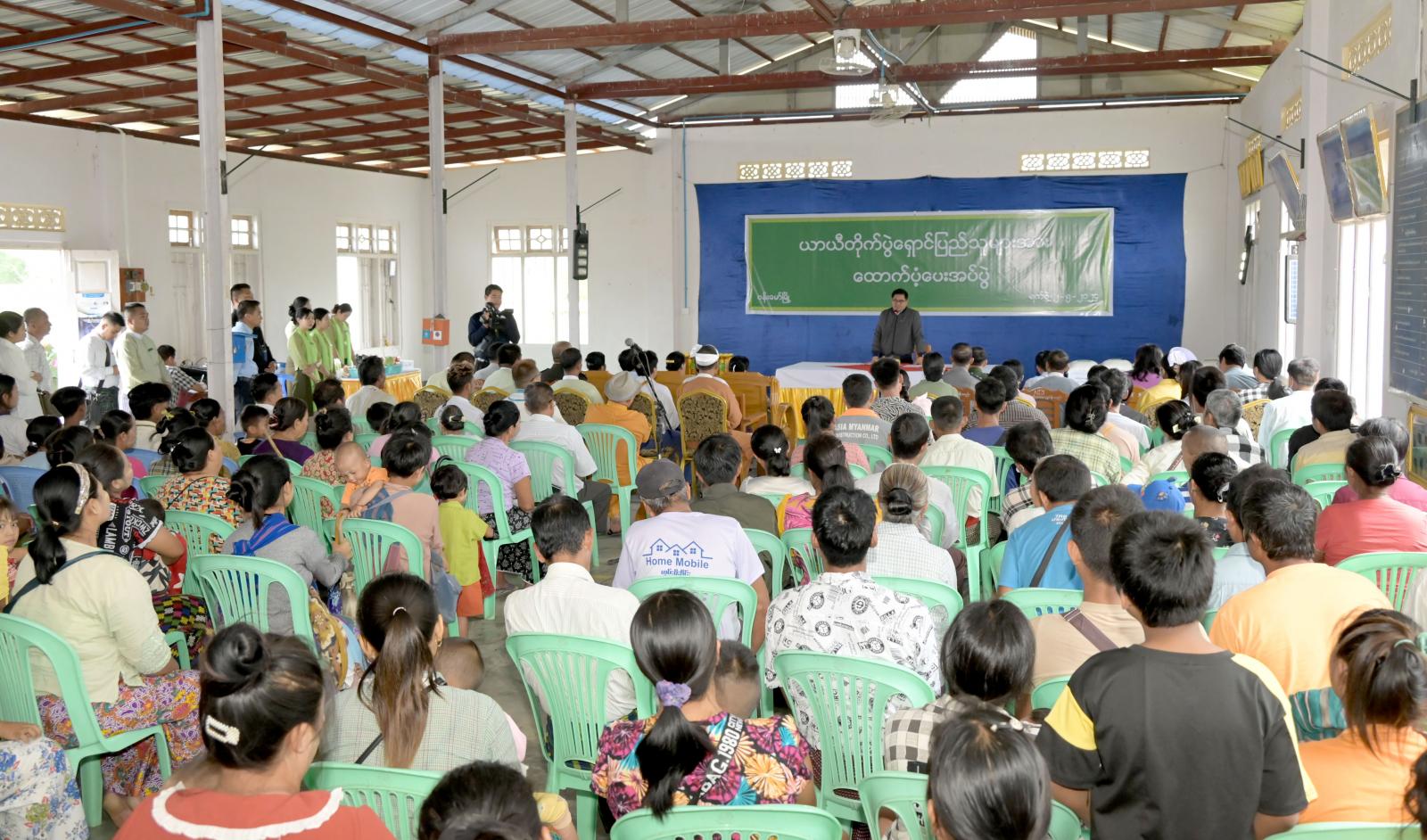 ထို့နောက် ပြည်နယ်ဝန်ကြီးချုပ်နှင့် ဇနီး၊ ပြည်နယ်ဝန်ကြီးများနှင့် တာဝန်ရှိသူများက အဆိုပါ ယာယီ တိမ်းရှောင်စခန်းတွင် ခေတ္တခိုလှုံနေထိုင်လျက်ရှိသည့် အိမ်ထောင်စု (၅၅)စုတို့အတွက် စုစုပေါင်း ငွေကျပ် (၅၀၃၂၅၀၀) တန်ဖိုးရှိ တစ်အိမ်ထောင်လျှင် ဆန် (၁) အိတ်၊ ကြက်ဥ ၁၀ လုံး၊ ဆီတစ်ဘူးစီ တို့နှင့် ခရိုင်/မြို့နယ်စီမံအုပ်ချုပ်ရေးအဖွဲ့များက ခေါက်ဆွဲခြောက်၊ ဂေါ်ဖီထုတ်များ၊ ဘေးအန္တရာယ် ဆိုင်ရာစီမံခန့်ခွဲမှုဦးစီးဌာနက အိမ်ထောင်စုများအတွက် တစ်လစာဆန်ရိက္ခာဖိုးအဖြစ် ငွေကျပ် (၁၇၇၃၀၀၀/-) တို့ကို အသီးသီးထောက်ပံ့ပေးအပ်ခဲ့ကြပြီး အိမ်ထောင်စုများ၏ ယာယီစခန်းအတွင်း လိုအပ်ချက်များ တင်ပြမှုအပေါ် ပြည်နယ်ဝန်ကြီးချုပ်က အမြန်ဆုံးဖြည့်ဆည်းဆောင်ရွက်ပေးနိုင်ရေး ညှိနှိုင်းပေါင်းစပ်ပေးခဲ့သည်။