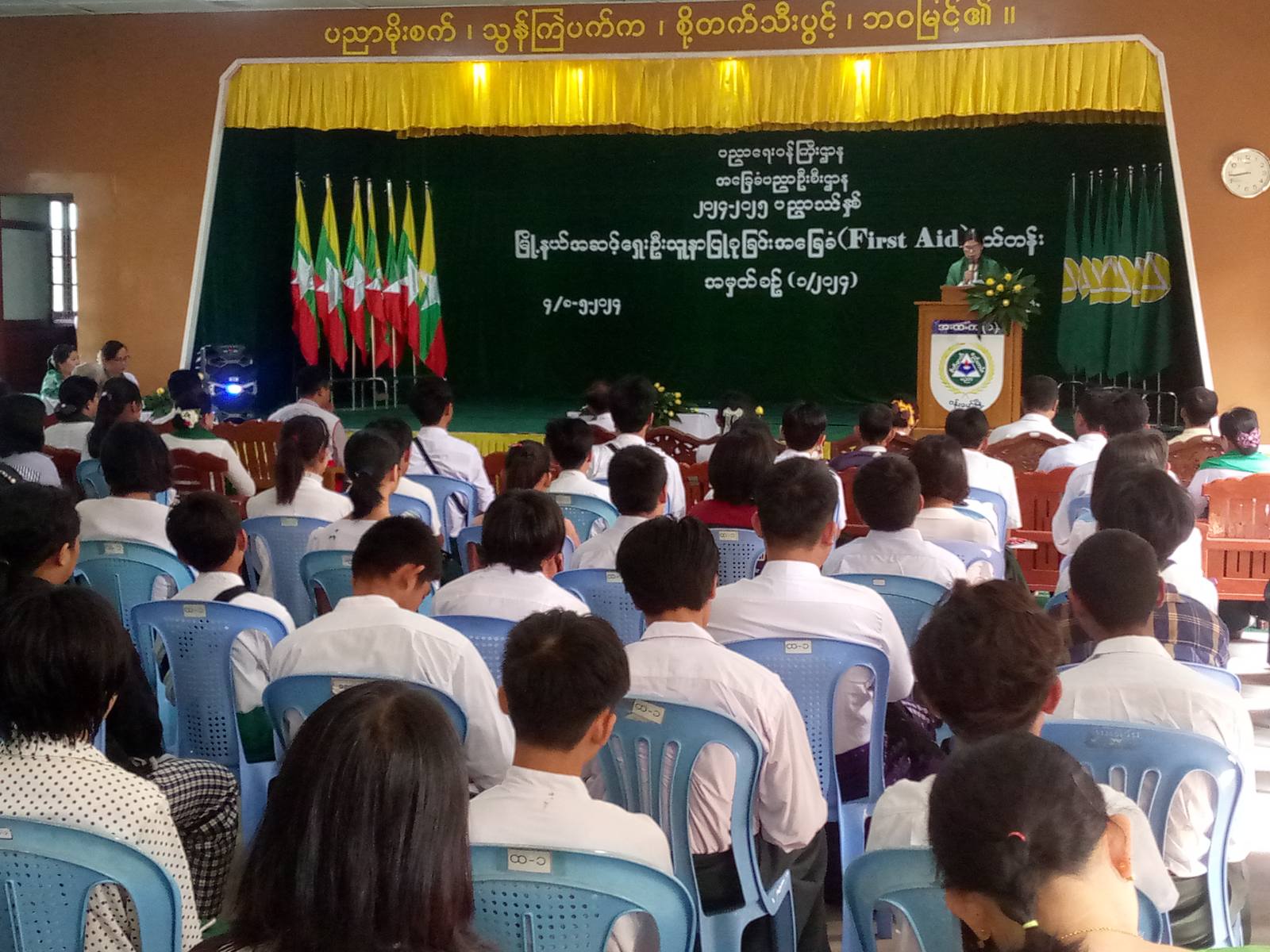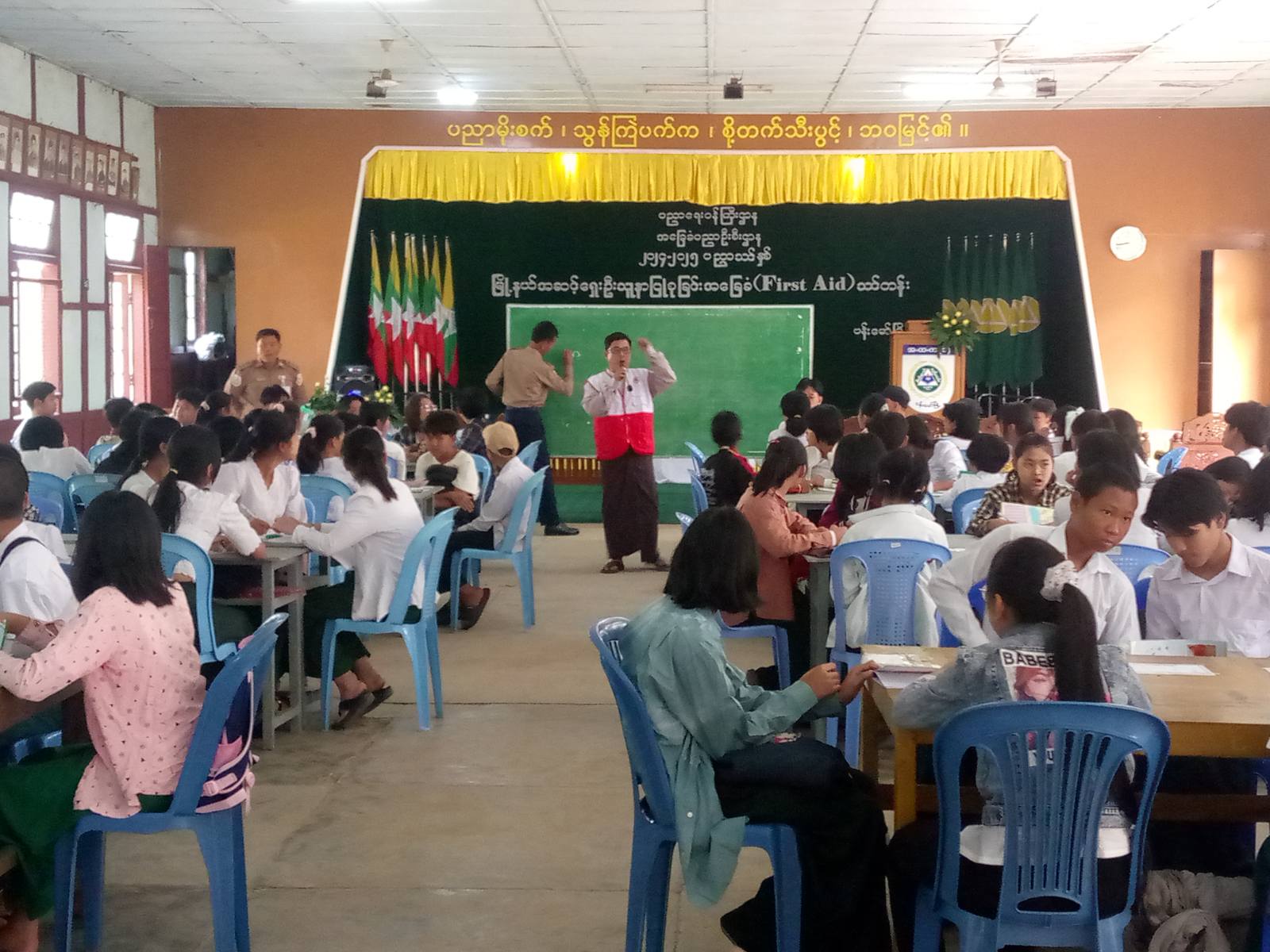 ကချင်ပြည်နယ်၊ ဗန်းမော်ခရိုင်အတွင်းရှိ ကျောင်းသားကျောင်းသူလူငယ်များအား နွေရာသီကျောင်းပိတ်ရက်တွင် အချိန်ကိုအကျိုးရှိစွာအသုံးချနိုင်စေရန်နှင့် ရှေးဦးသူနာပြုစုနည်း အတတ်ပညာကို လေ့လာတတ်မြောက်စေရန်ရည်ရွယ်၍ ယနေ့နံနက် (၈) နာရီခွဲခန့်က ဗန်းမော်မြို့ အမှတ်(၁)အခြေခံပညာအထက်တန်းကျောင်း အောင်တံခွန်ခန်းမ၌ ရှေးဦးသူနာပြုစုနည်းအခြေခံ ( FIRST AID ) သင်တန်းအမှတ်စဉ်(၁/၂၀၂၄)ကို ဖွင့်လှစ်ခဲ့ကြောင်းသိရသည်။